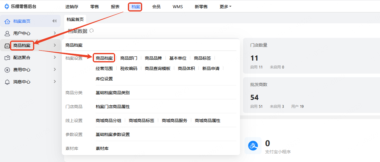 👉【操作路径】:档案-商品档案-商品档案