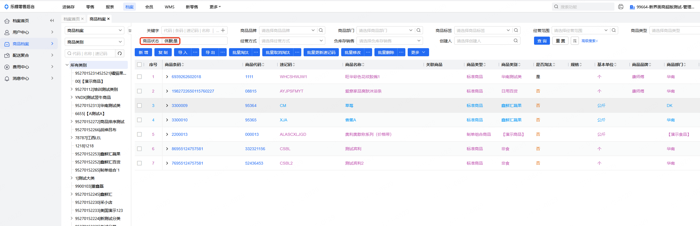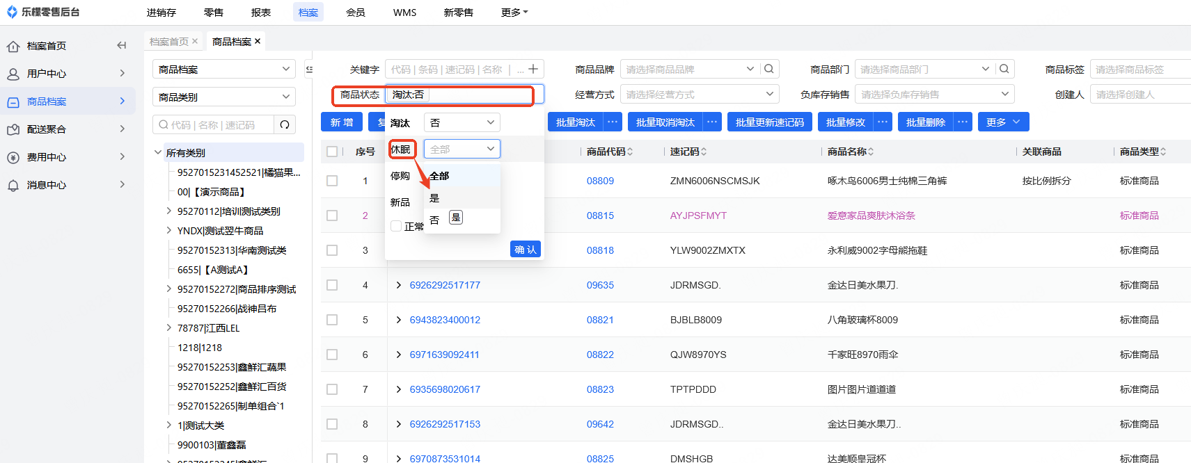 商品档案-休眠标记
