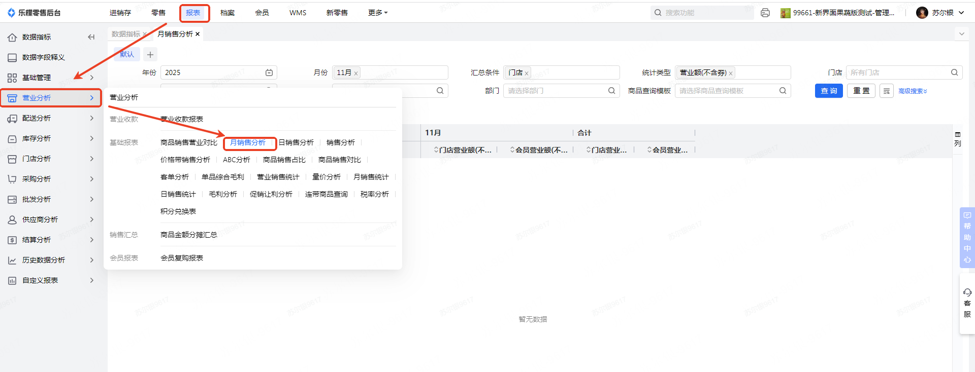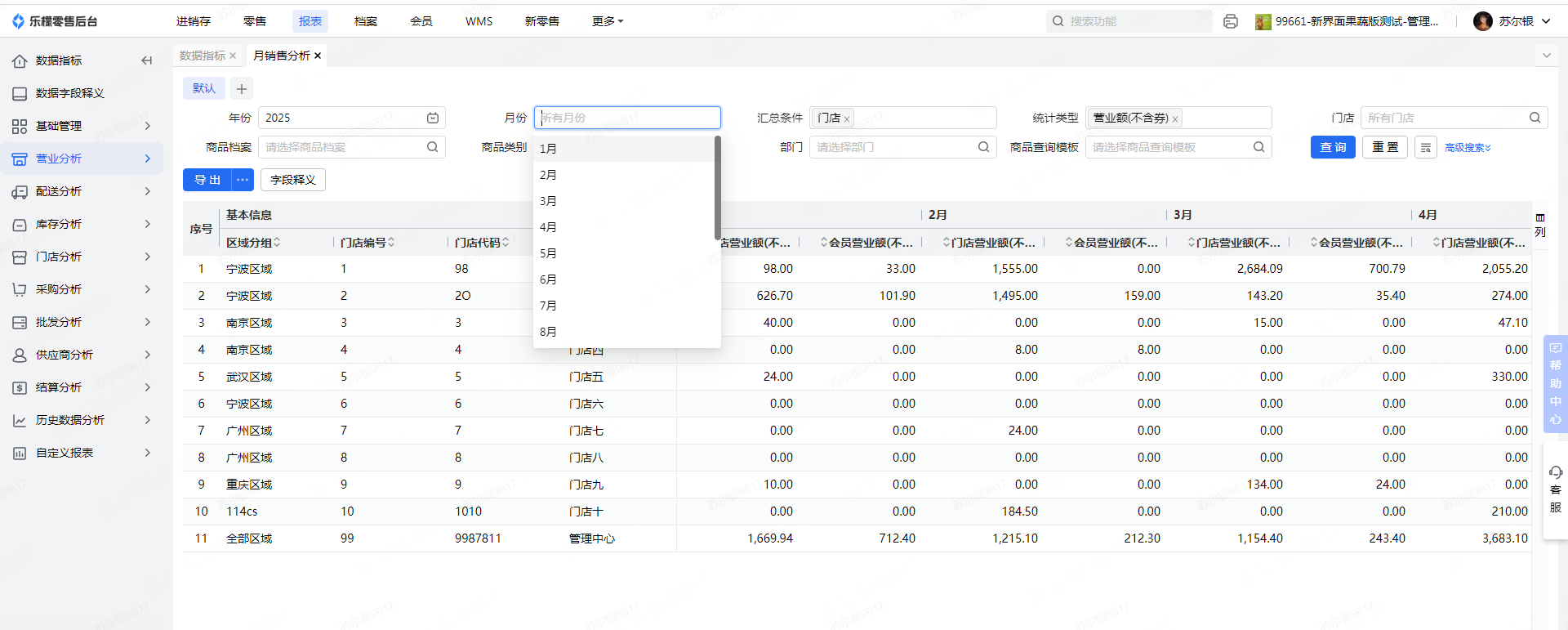 月销售分析中可修改条件进行查询整年数据;可以选择单独某个月份查看