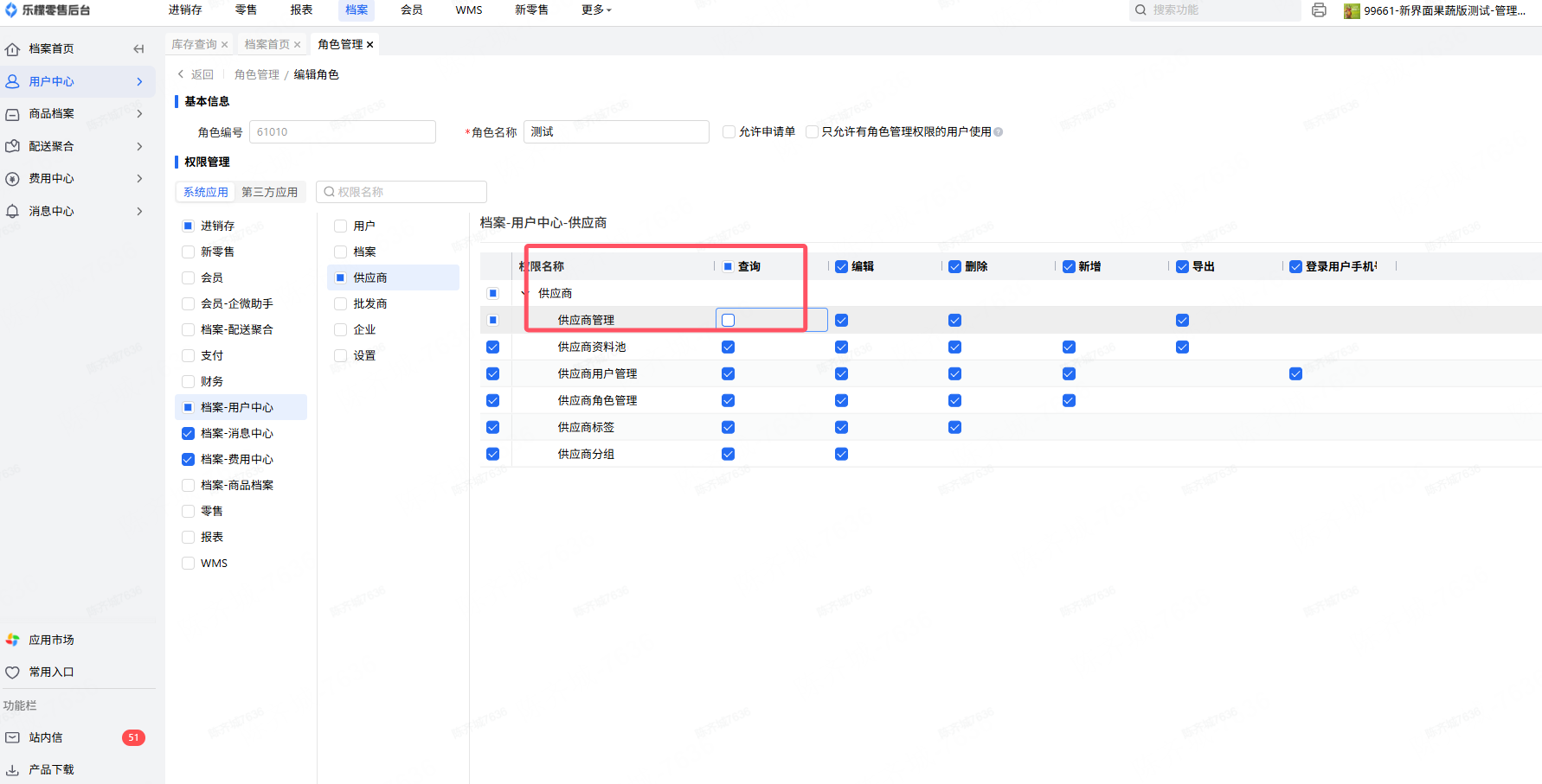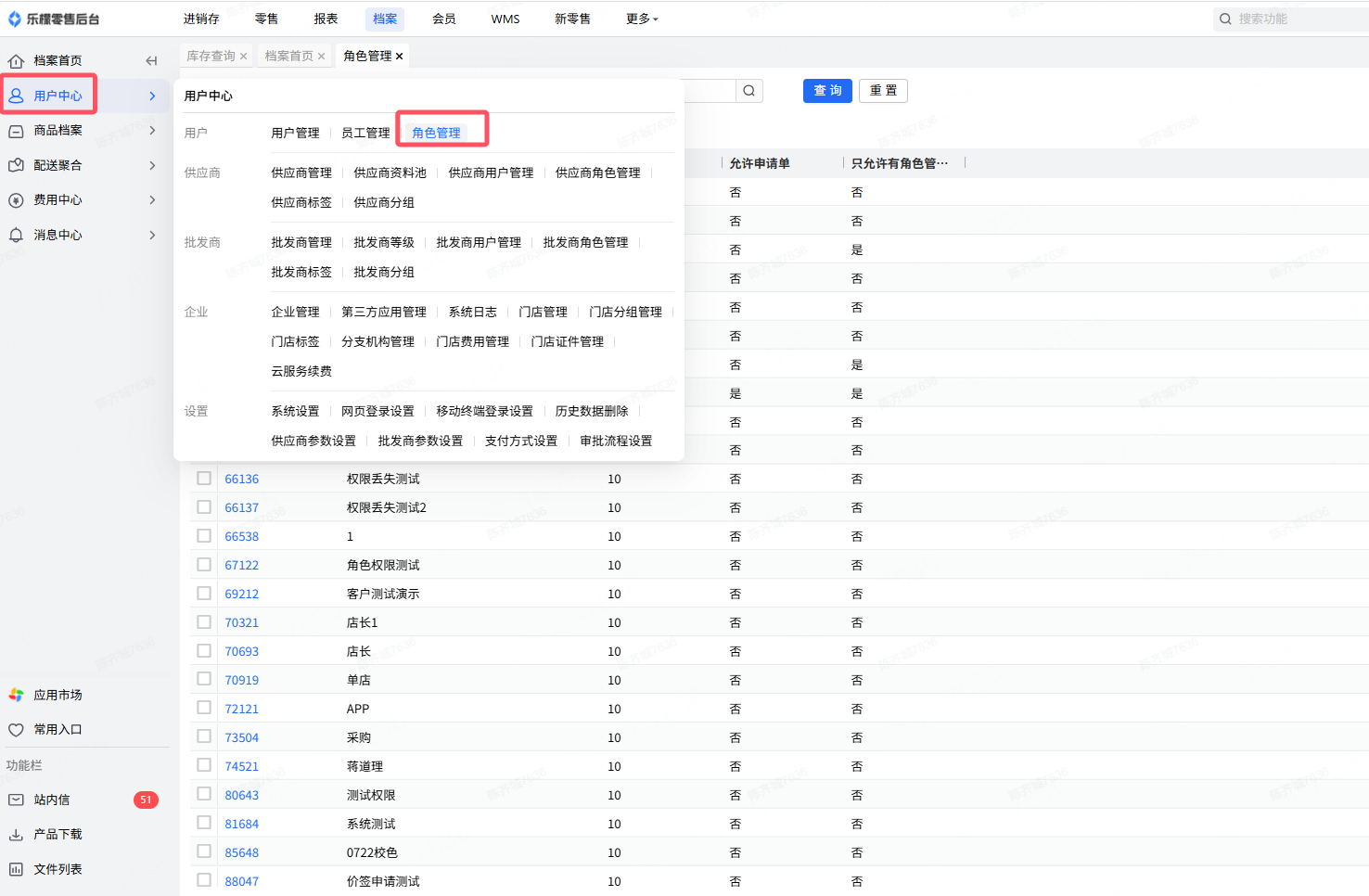👉【操作路径】:进销存-库存管理-业务查询-库存查询-供应商,以及档案-用户管理-角色管理