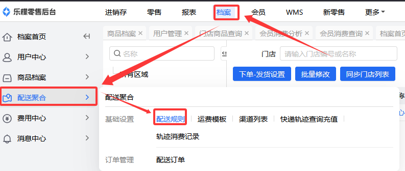 👉【操作路径】:档案-配送聚合-配送规则,点击需要设置的门店,运费设置-开启【特殊时段费用】,然后进行设置