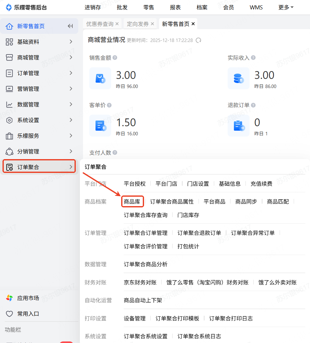 👉【操作路径】:新零售-订单聚合-基础设置-商品库-批量修改