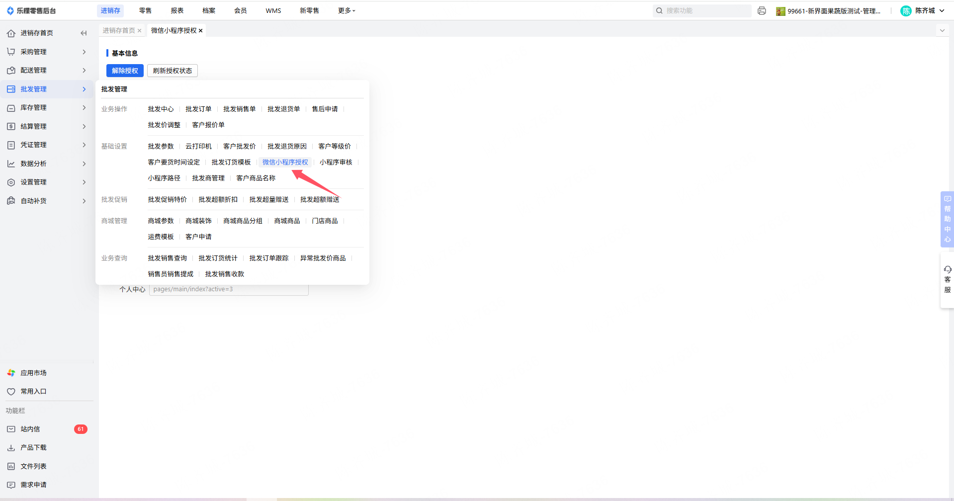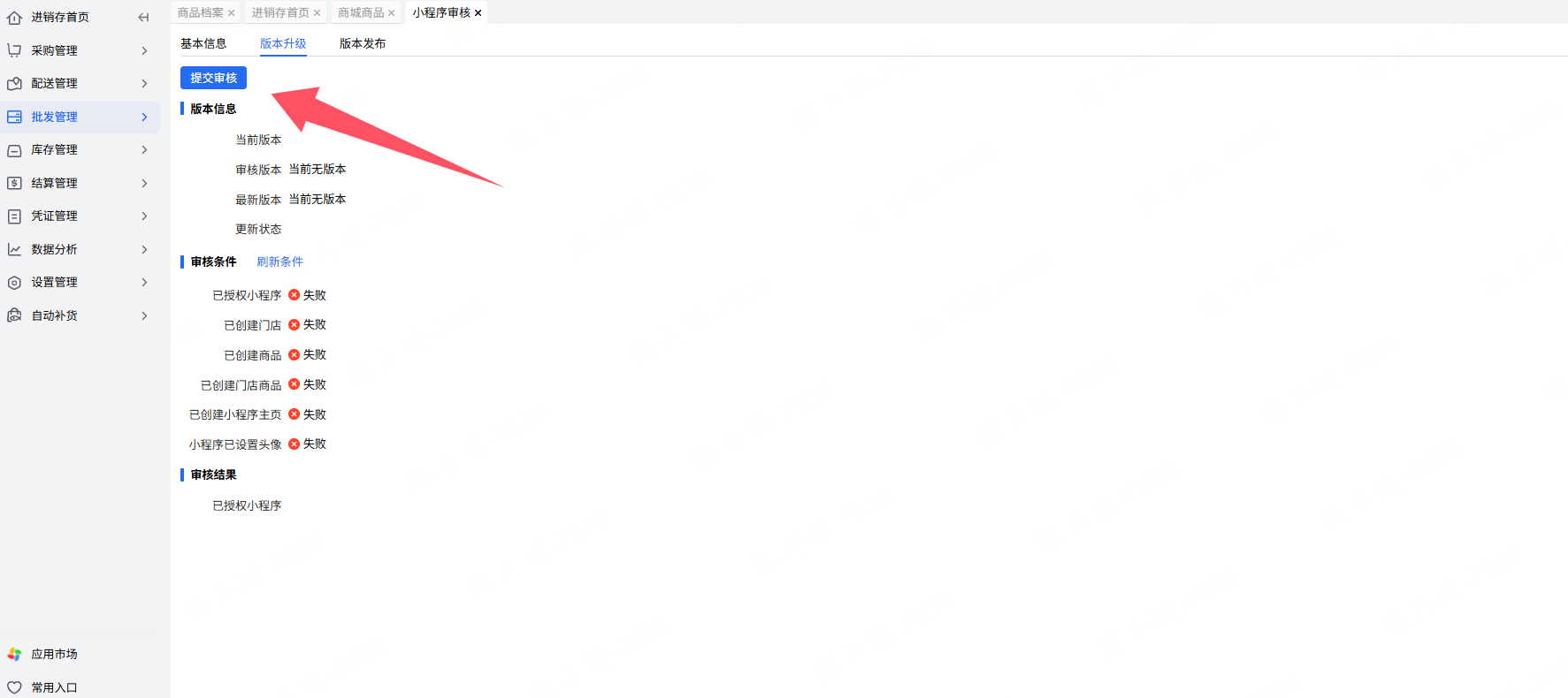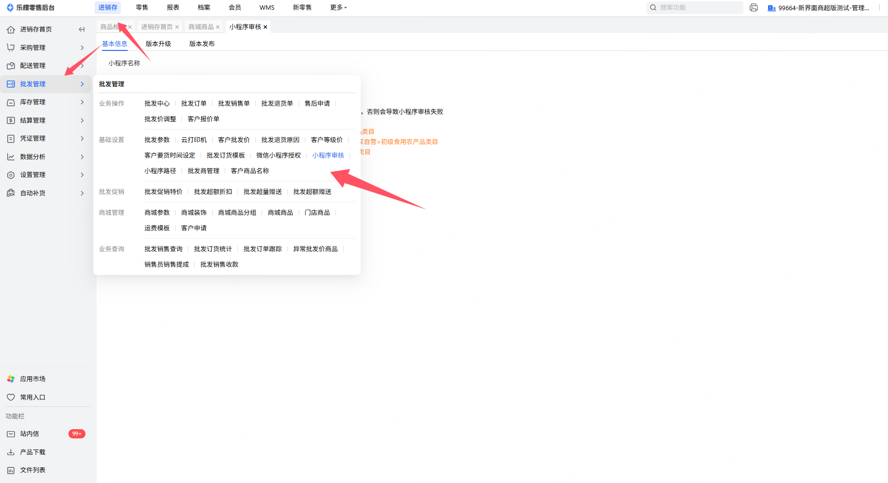 👉【操作路径】:进销存-批发管理-基础设置-小程序审核