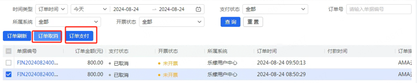 👉【操作路径】:等待10分钟左右,等待二维码失效即可。然后重新发起支付 。后台也可以在费用中心-费用订单 操作订单取消重新支付