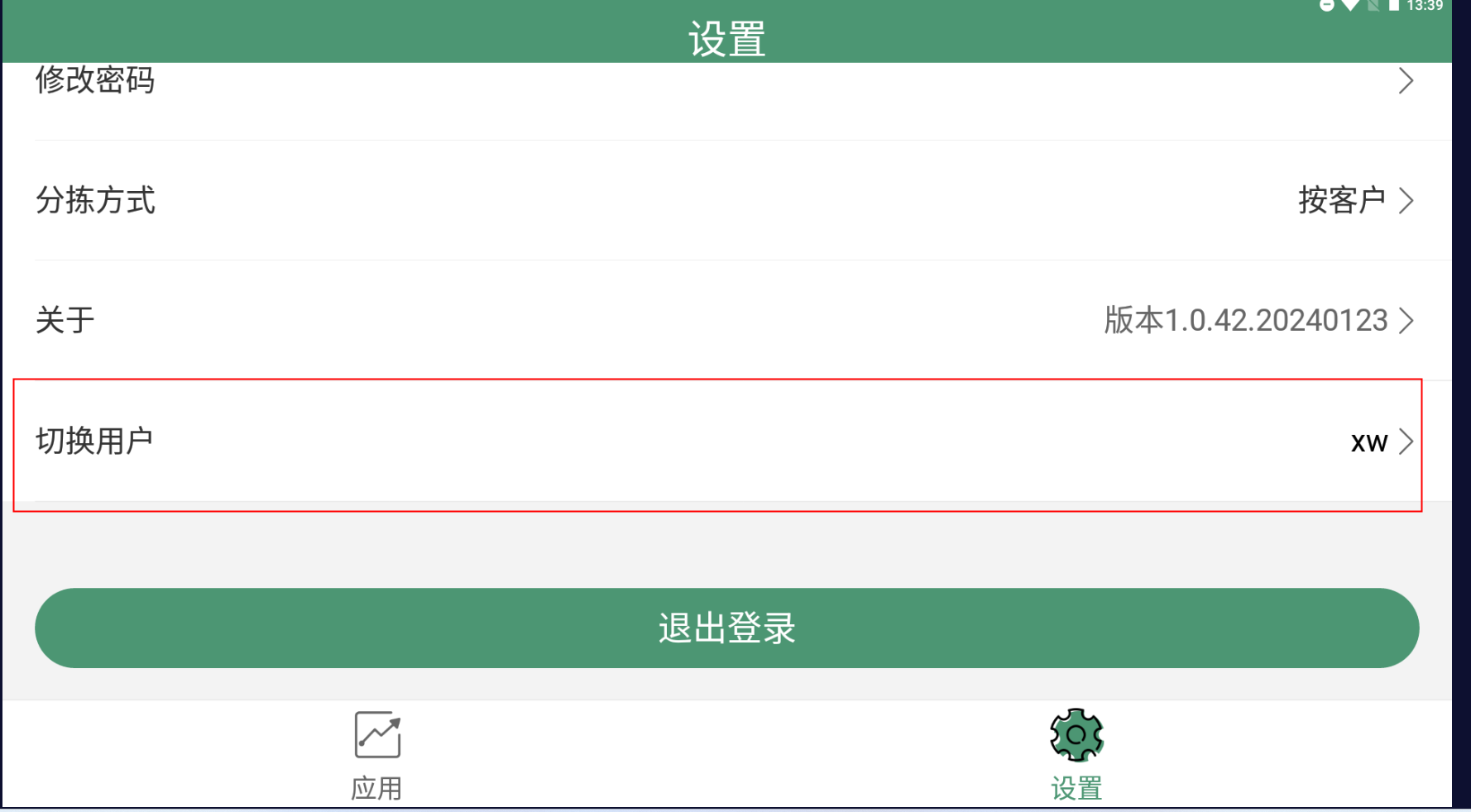 设置界面增加“切换用户”功能栏