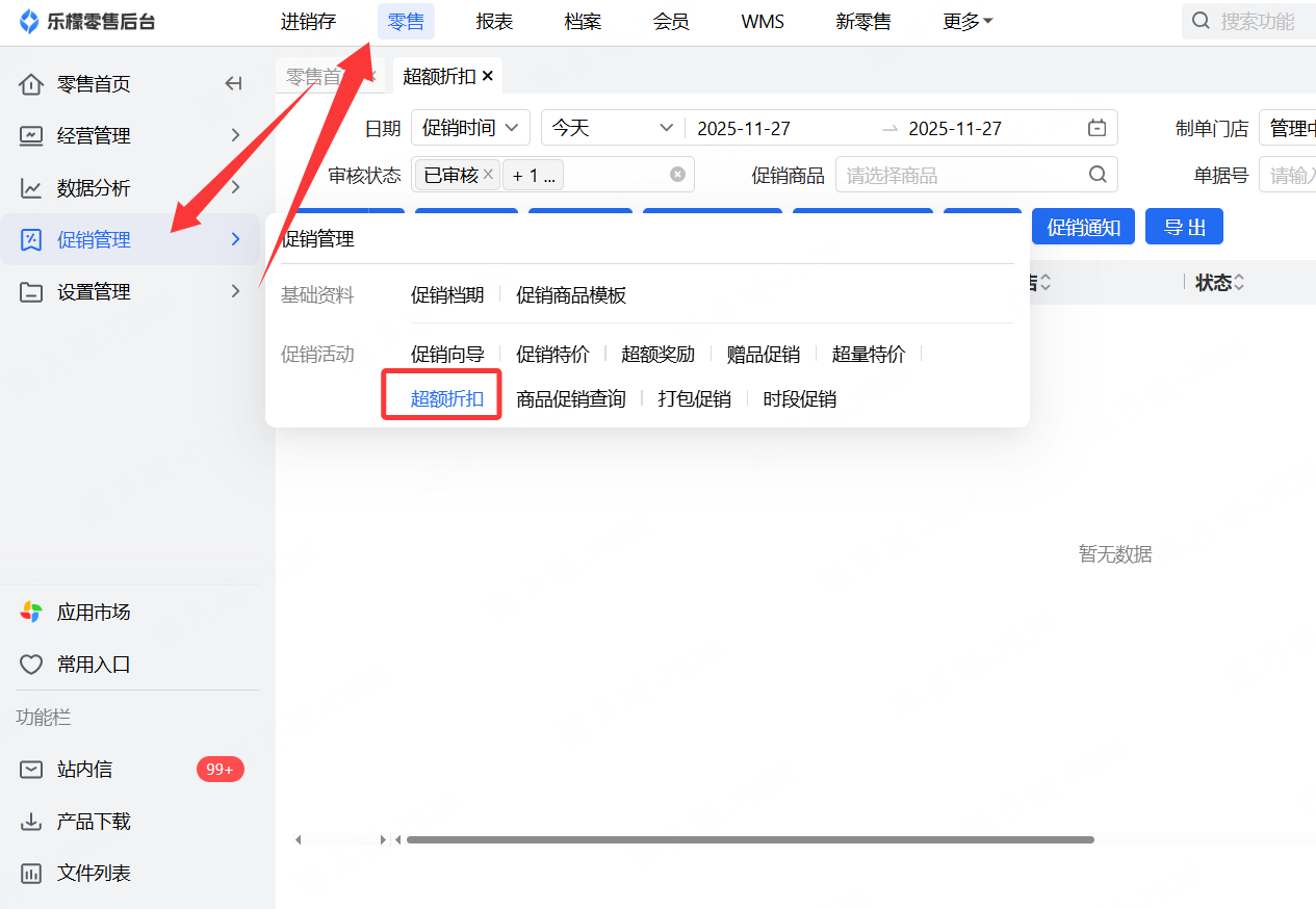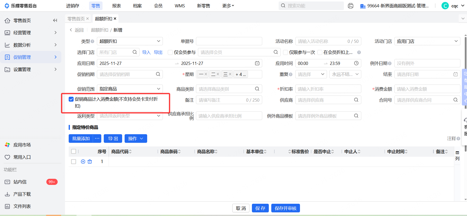 👉【操作路径】:零售-促销管理-促销活动-超额折扣