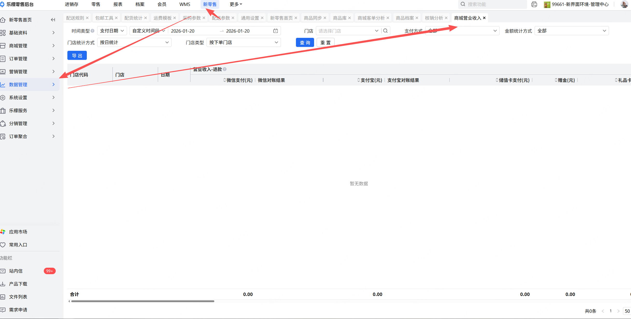 👉【操作路径】:乐檬零售app-数据-新零售V2数据-收入分析