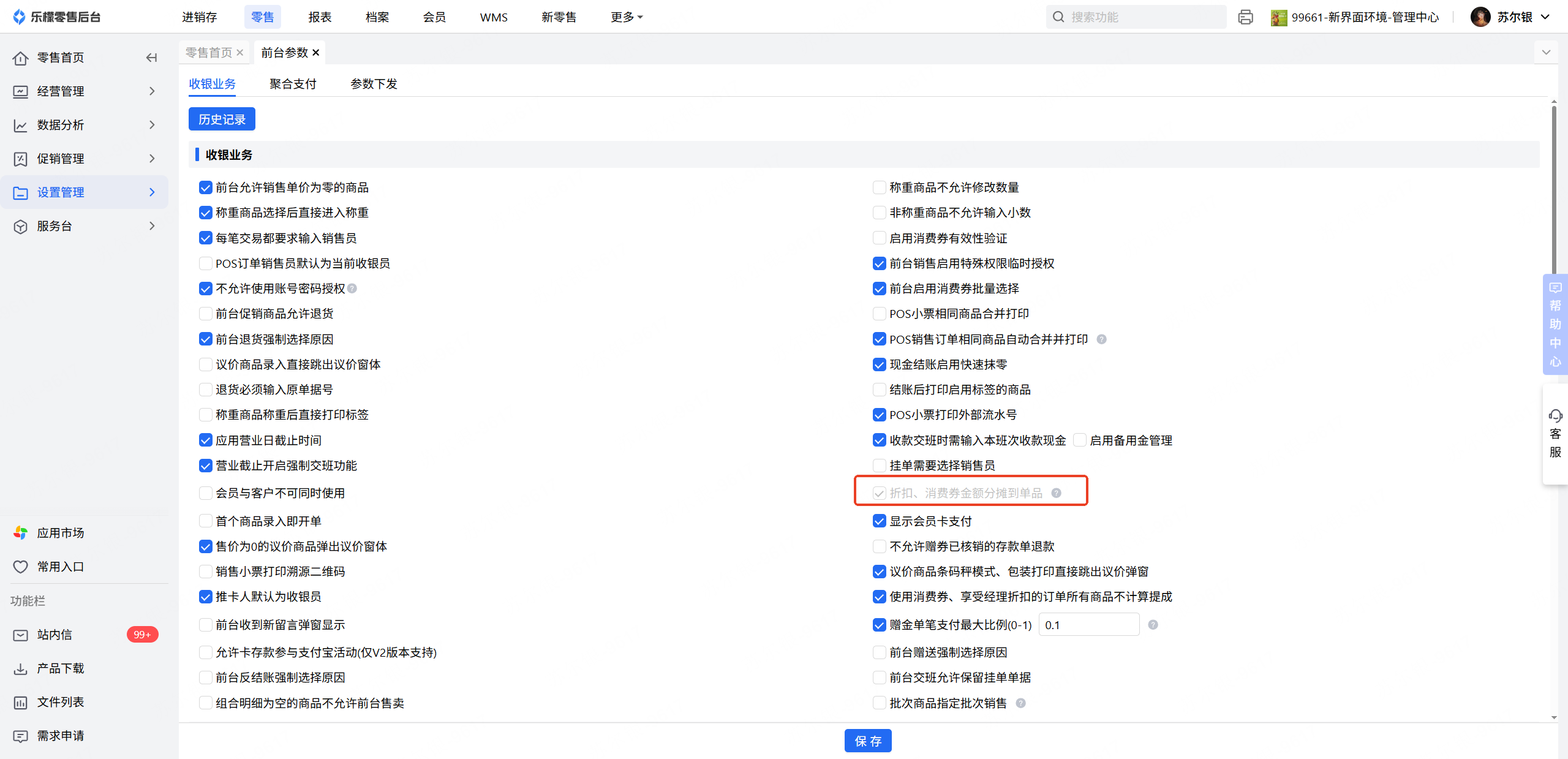 后台零售-设置管理-前台参数-折扣、消费券金额分摊到单品