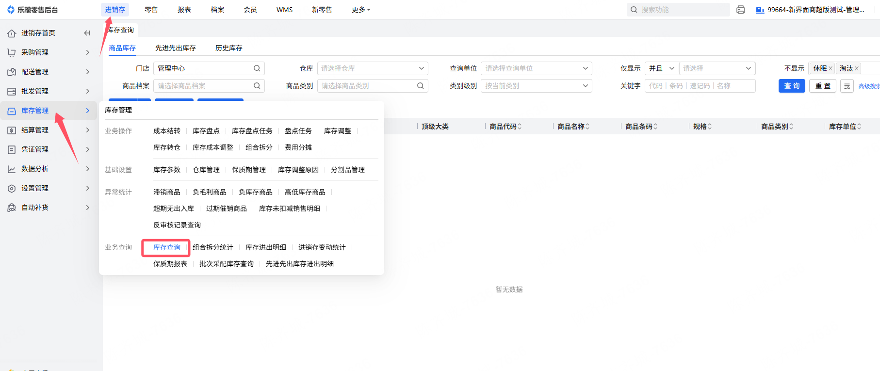 👉【操作路径】:进销存-库存管理-业务查询-库存查询