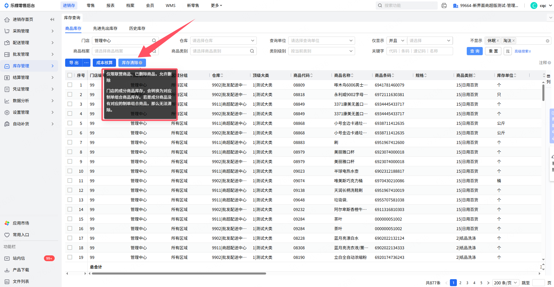 门店的成分商品库存,会转换为对应制单组合商品库存。若是成分商品没有对应的制单组合商品,那么无法清除。