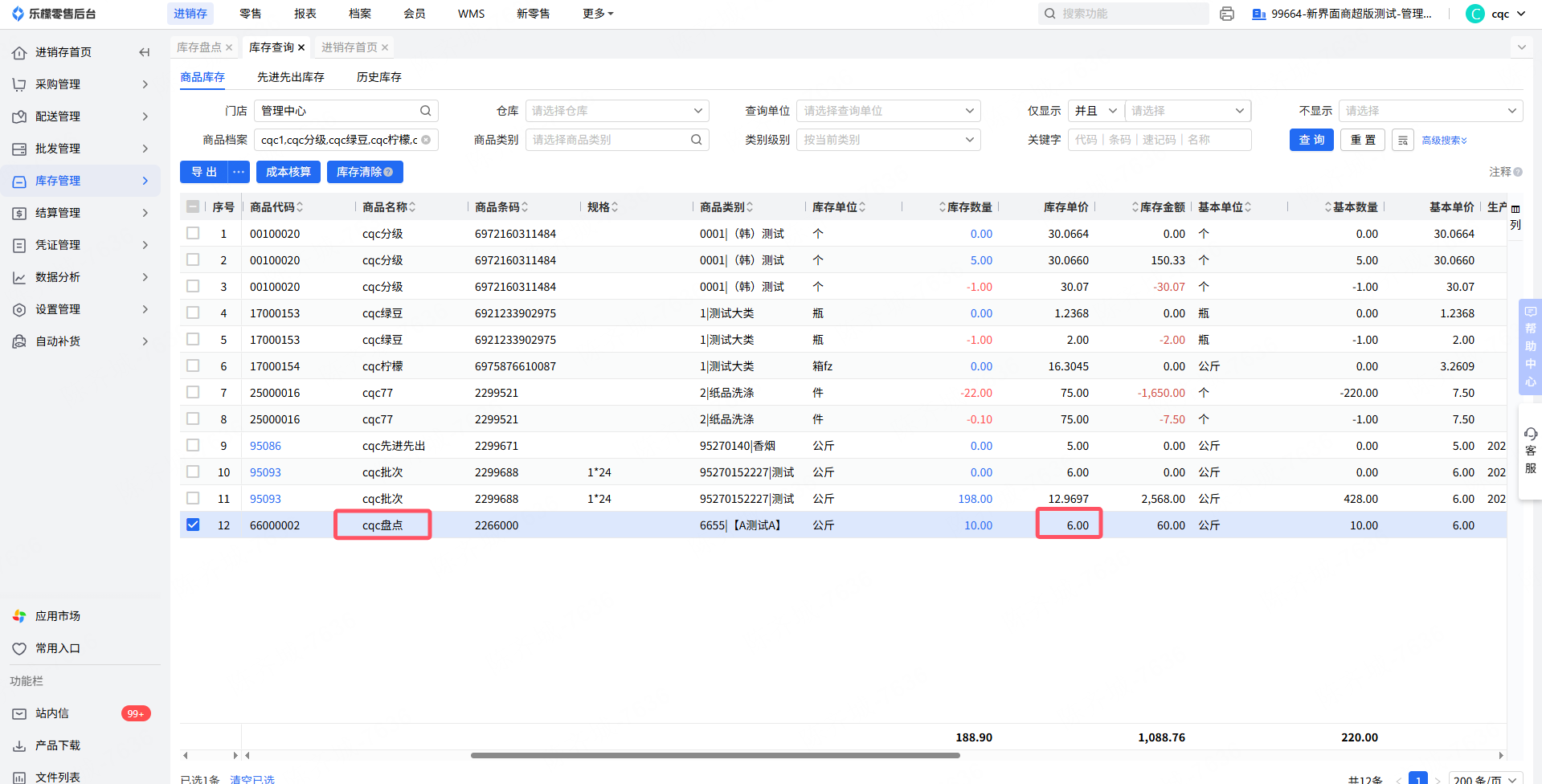 库存查询此商品单价是6正常价格