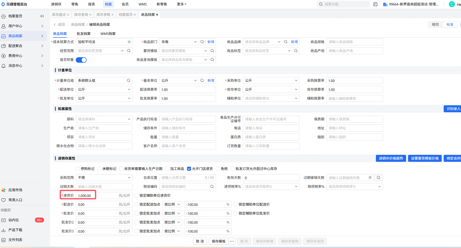 那么最近进价读取档案的进货价,档案进货价为1000导致