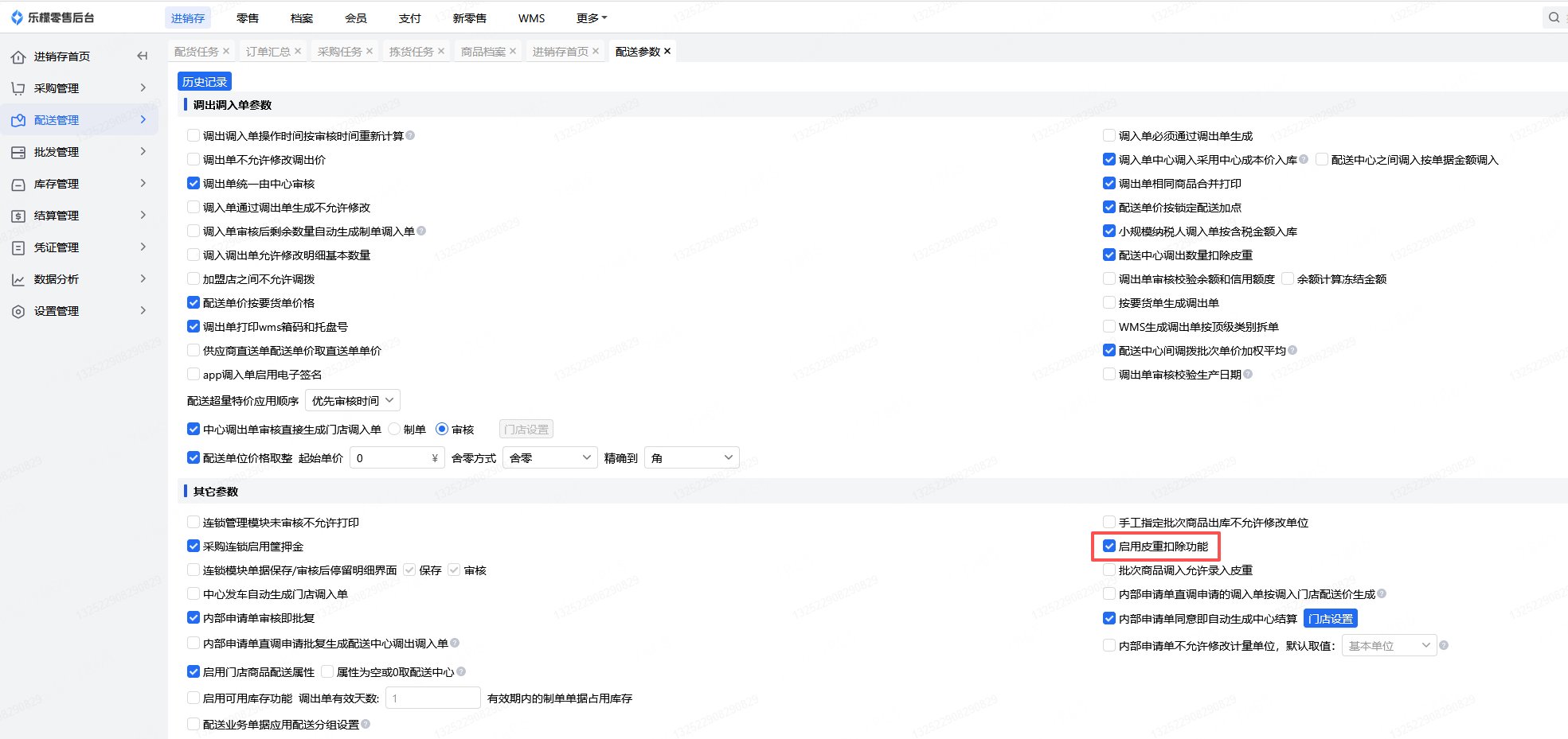 1.开启皮重参数:进销存-配送管理-配送参数-其他参数-启用皮重扣除功能