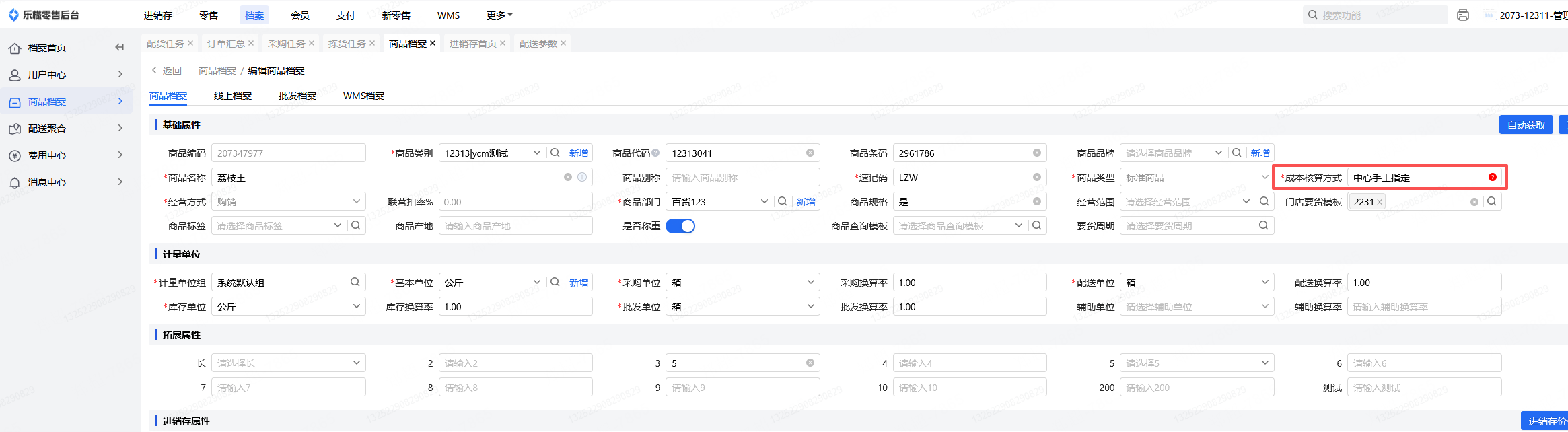 2.需要是批次商品,也就是商品档案的成本核算方式=中心手工指定or手工指定