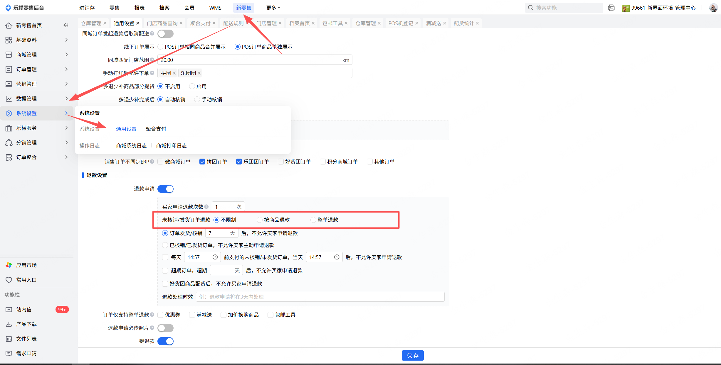 👉【操作路径】:乐檬新零售-系统设置-通用设置