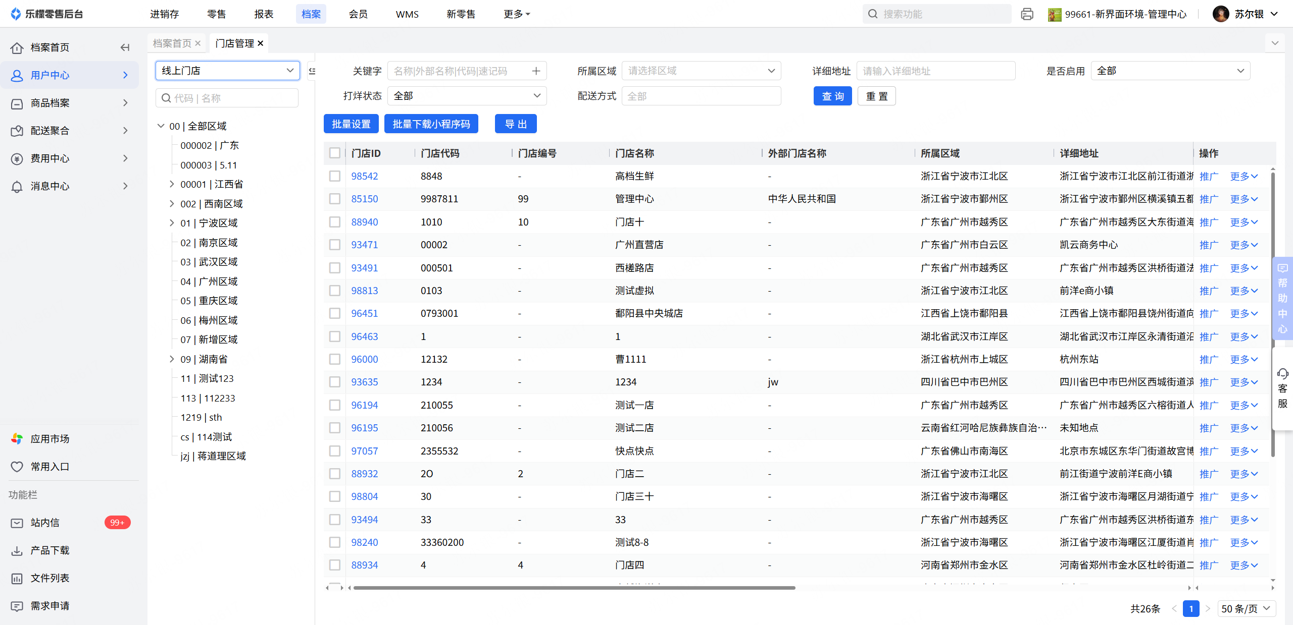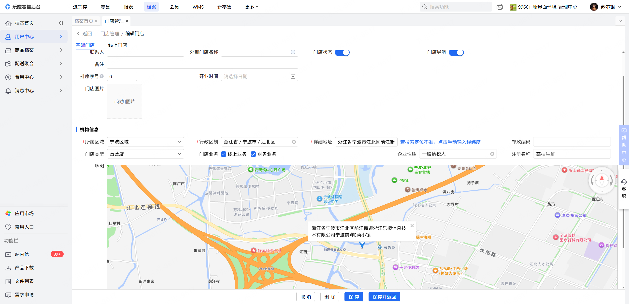 👉【操作路径】:档案中心-企业-门店管理