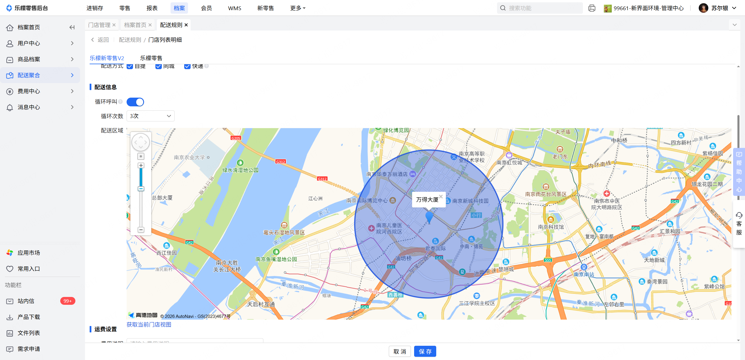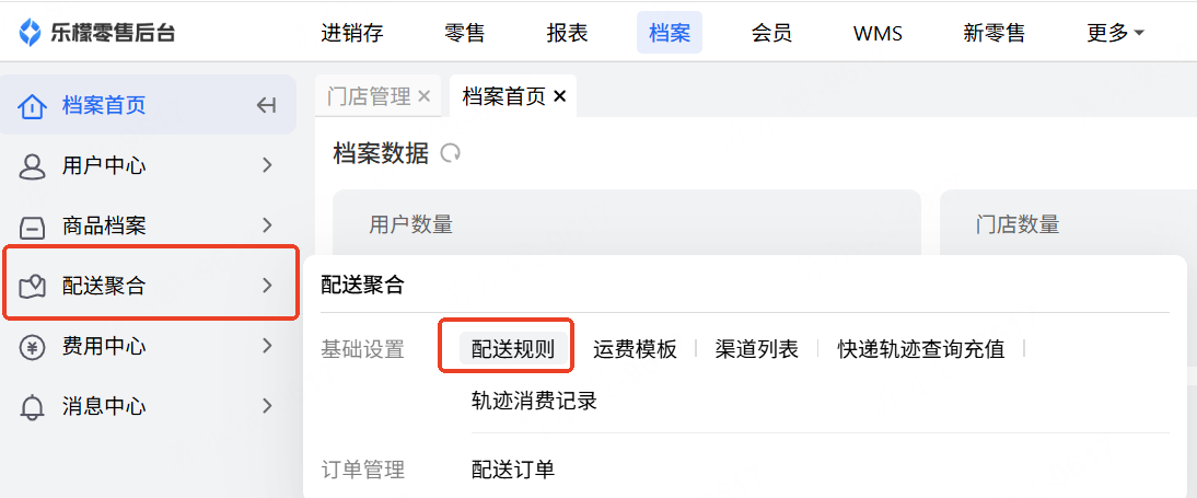 核实门店是否正常开启“同城”配送方式,并在档案-配送聚合-配送规则-门店详情中查看门店配送范围是否设置