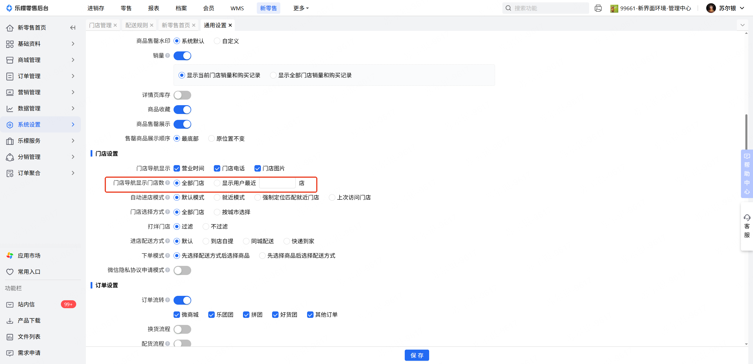 门店显示数量和显示范围可通过新零售-系统设置-通用设置中控制