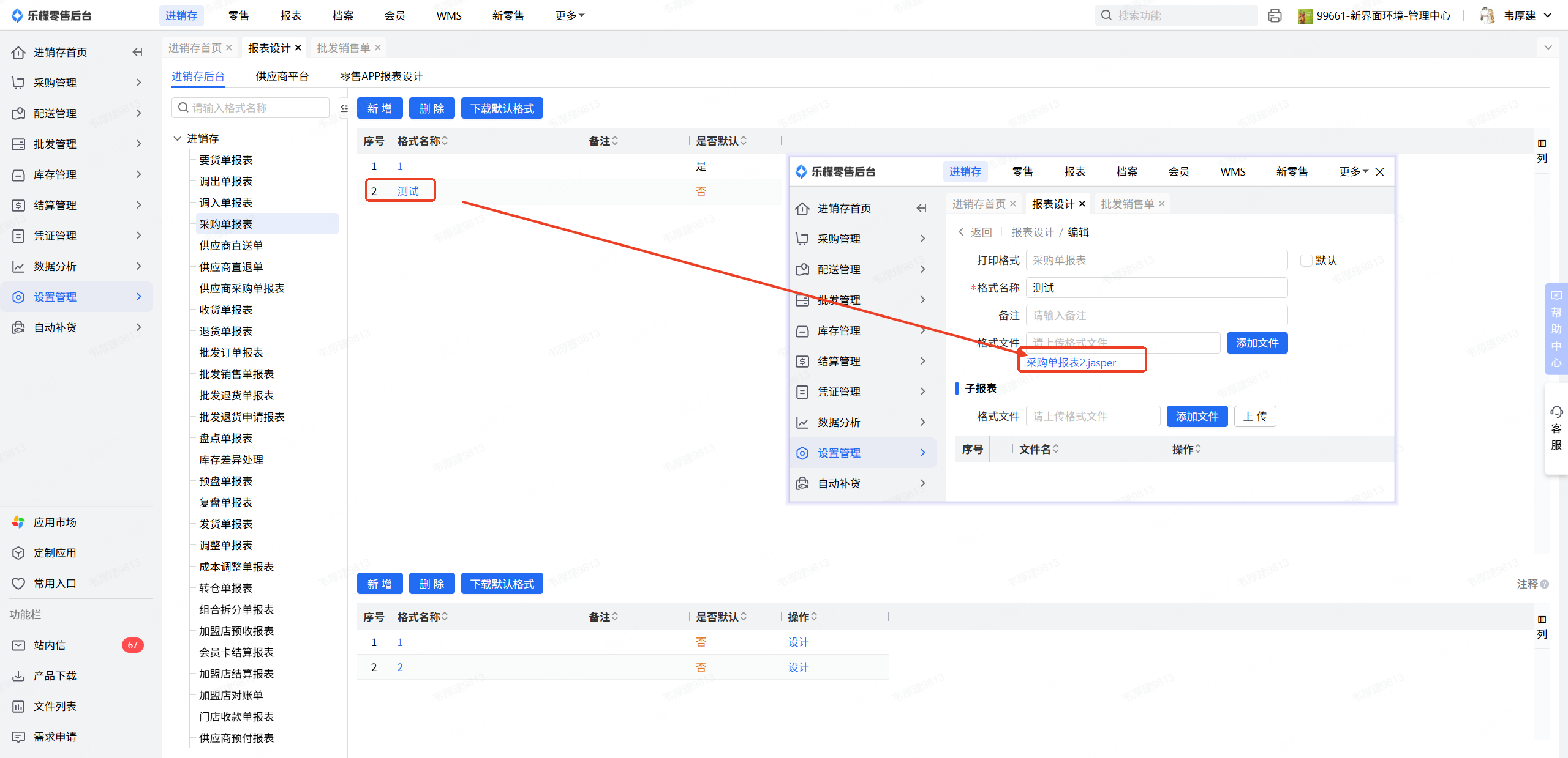 👉【操作路径】:1.进销存-设置管理-报表设计-采购单报表