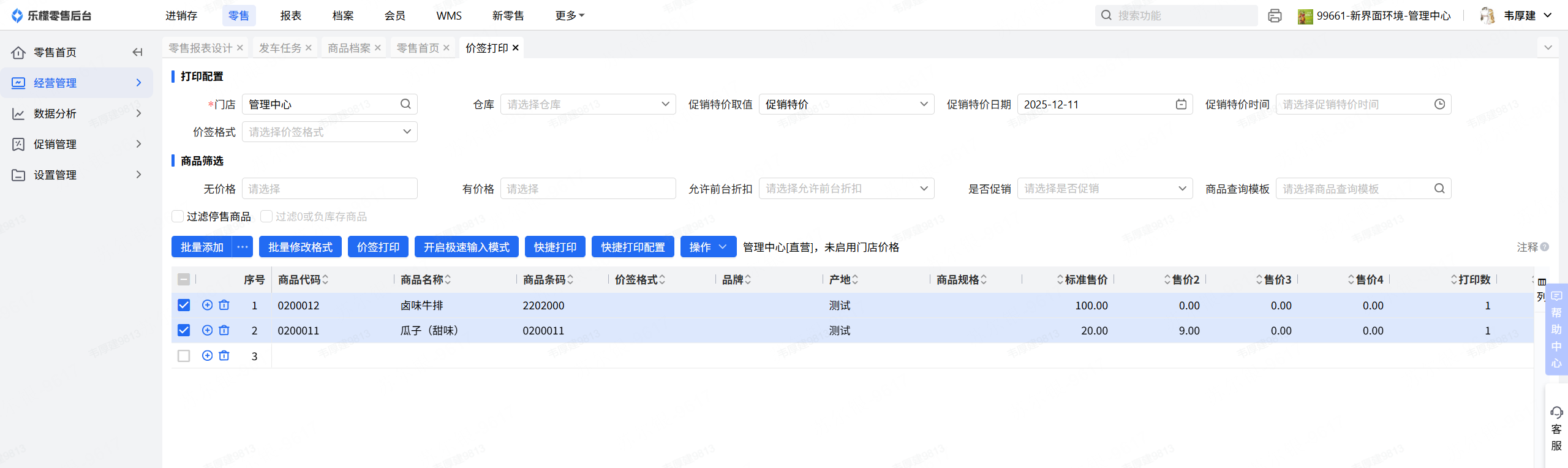 👉【操作路径】:·1.零售-设置管理-零售报表设计-价签打印