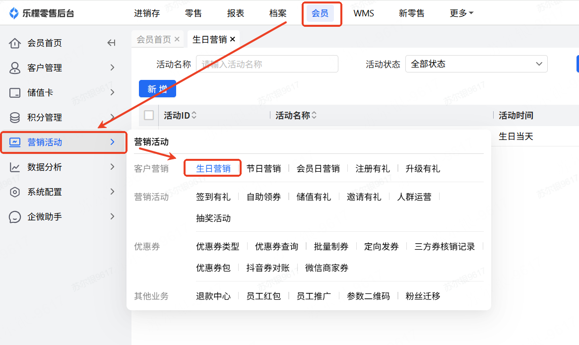 可设置活动名称,活动名称新增时会自动生成,客户可修改活动名称。活动时间类型可以选择生日当天、生日当周、生日当月