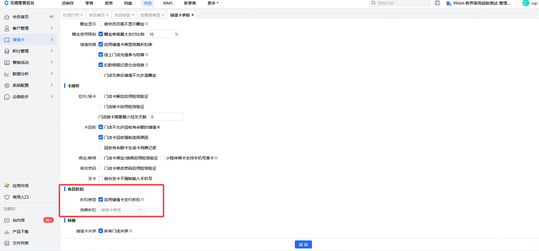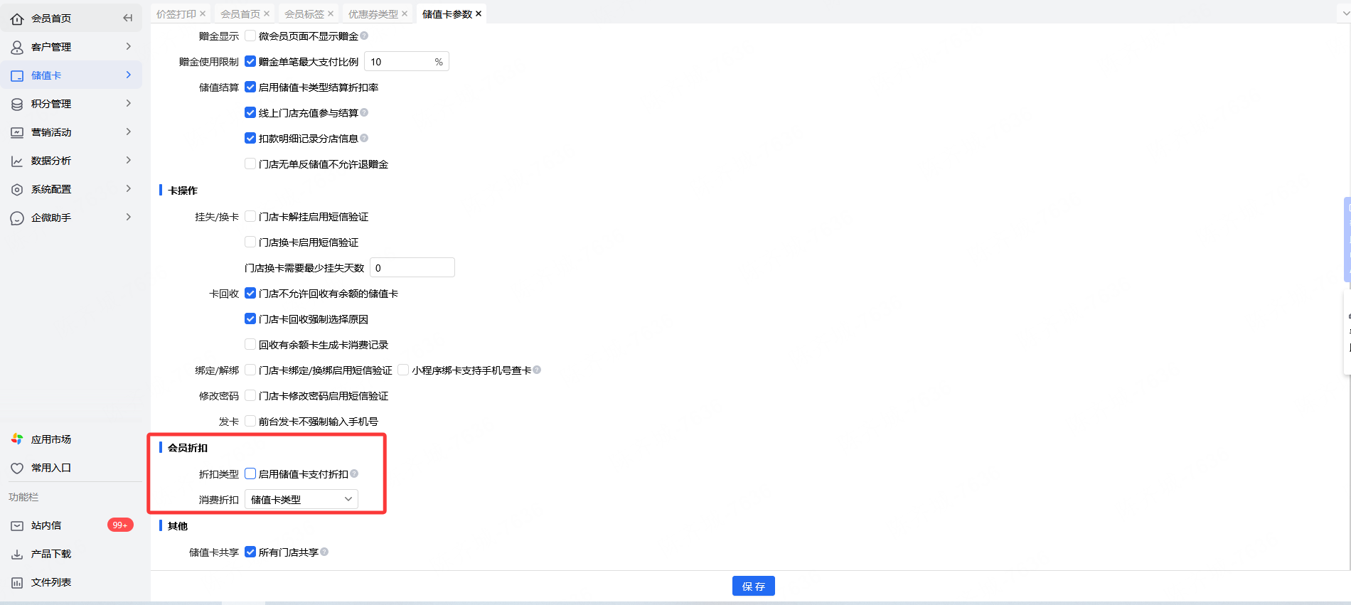 启用储值卡支付折扣参数