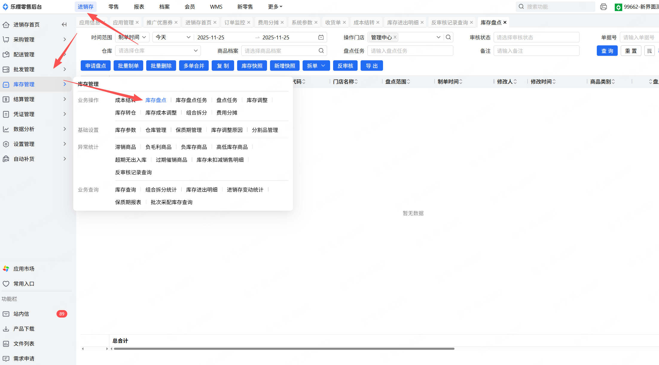 乐檬零售APP库存盘点-盘点范围没有全场盘点