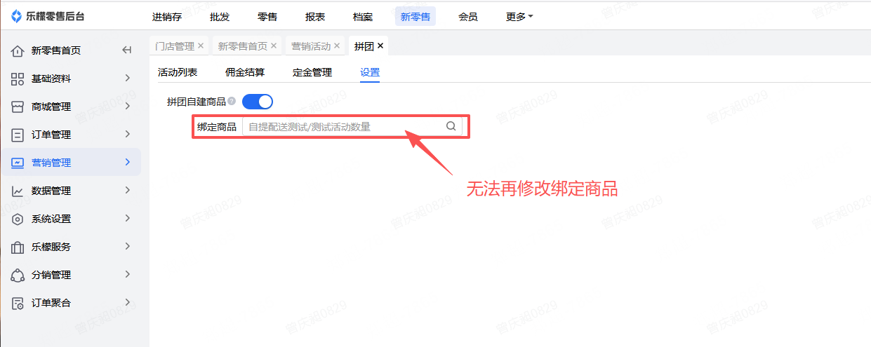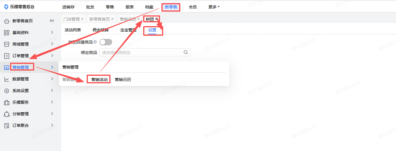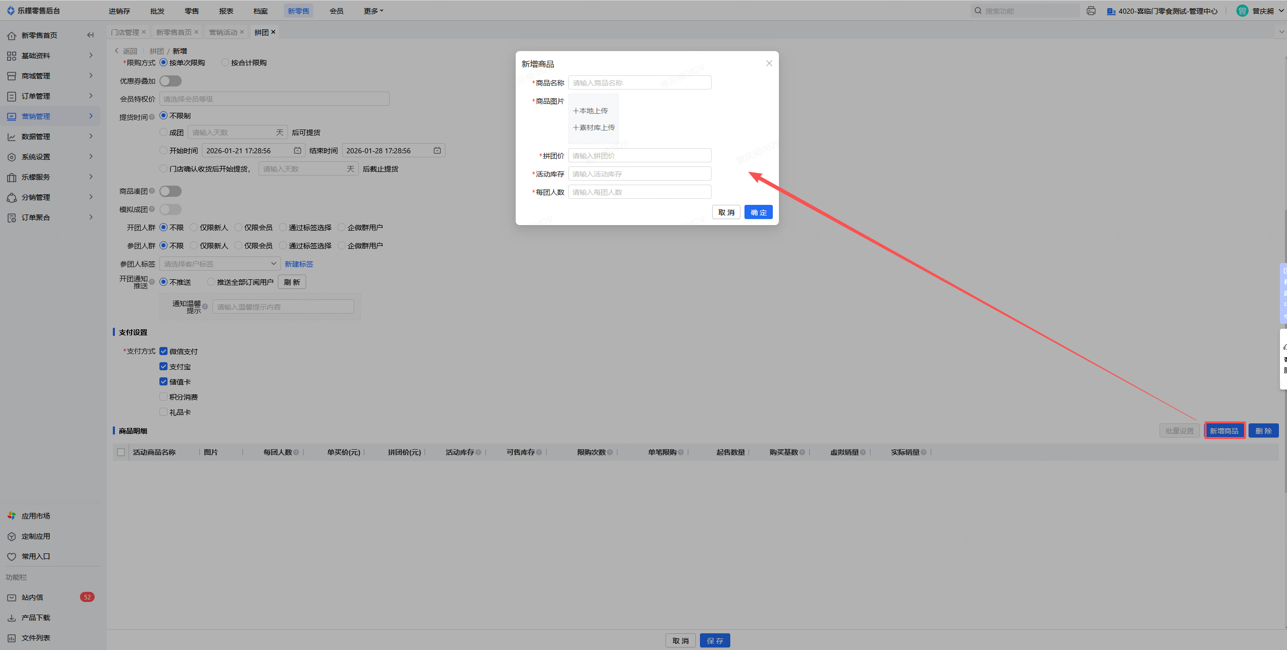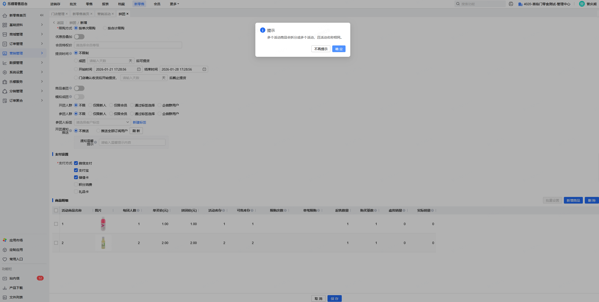 【操作路径】:新零售-营销管理-营销活动-拼团-设置