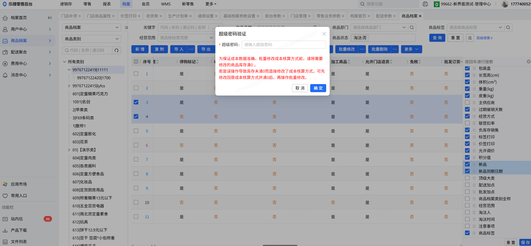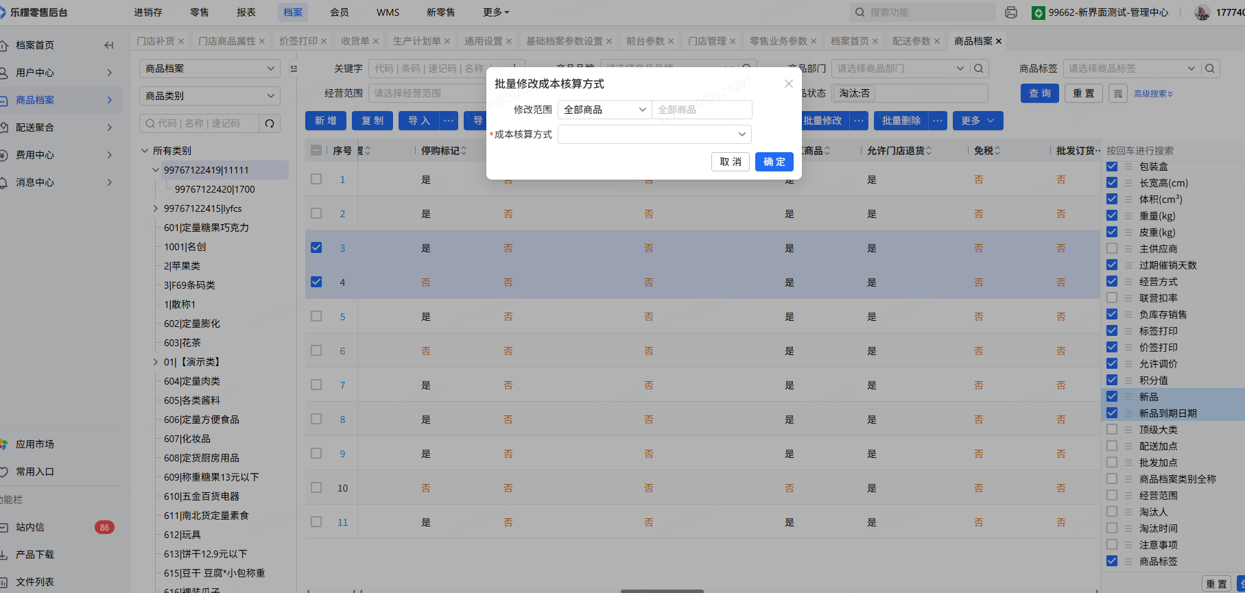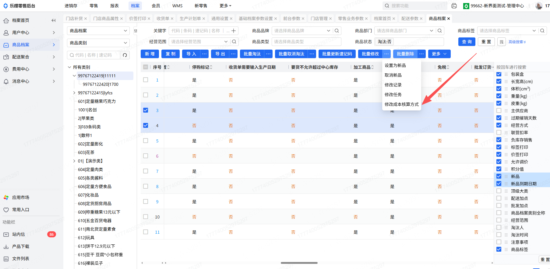 前期建档比较随意,后因业务生态不同,商品需要批量变更成本核算方式。