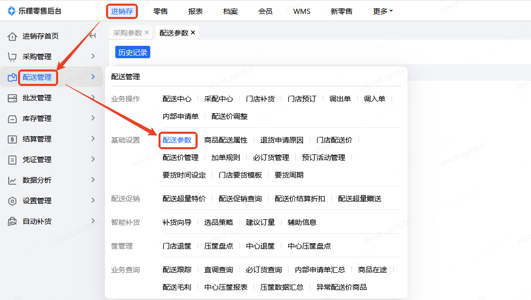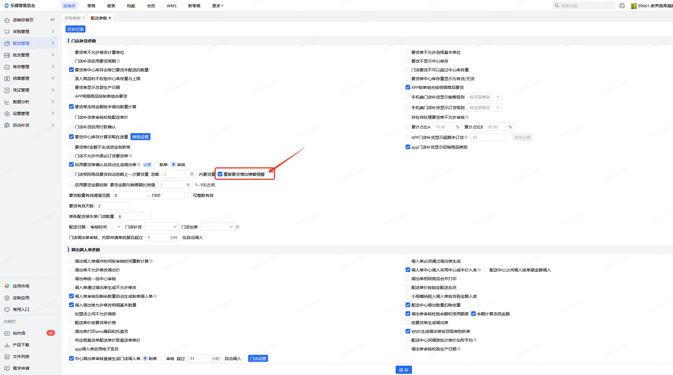 👉【操作路径】:进销存-配送管理-配送参数-重复要货增加弹窗提醒