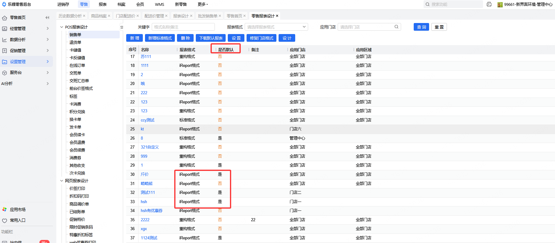后台有很多个小票模板,应用不上自己想要的报表