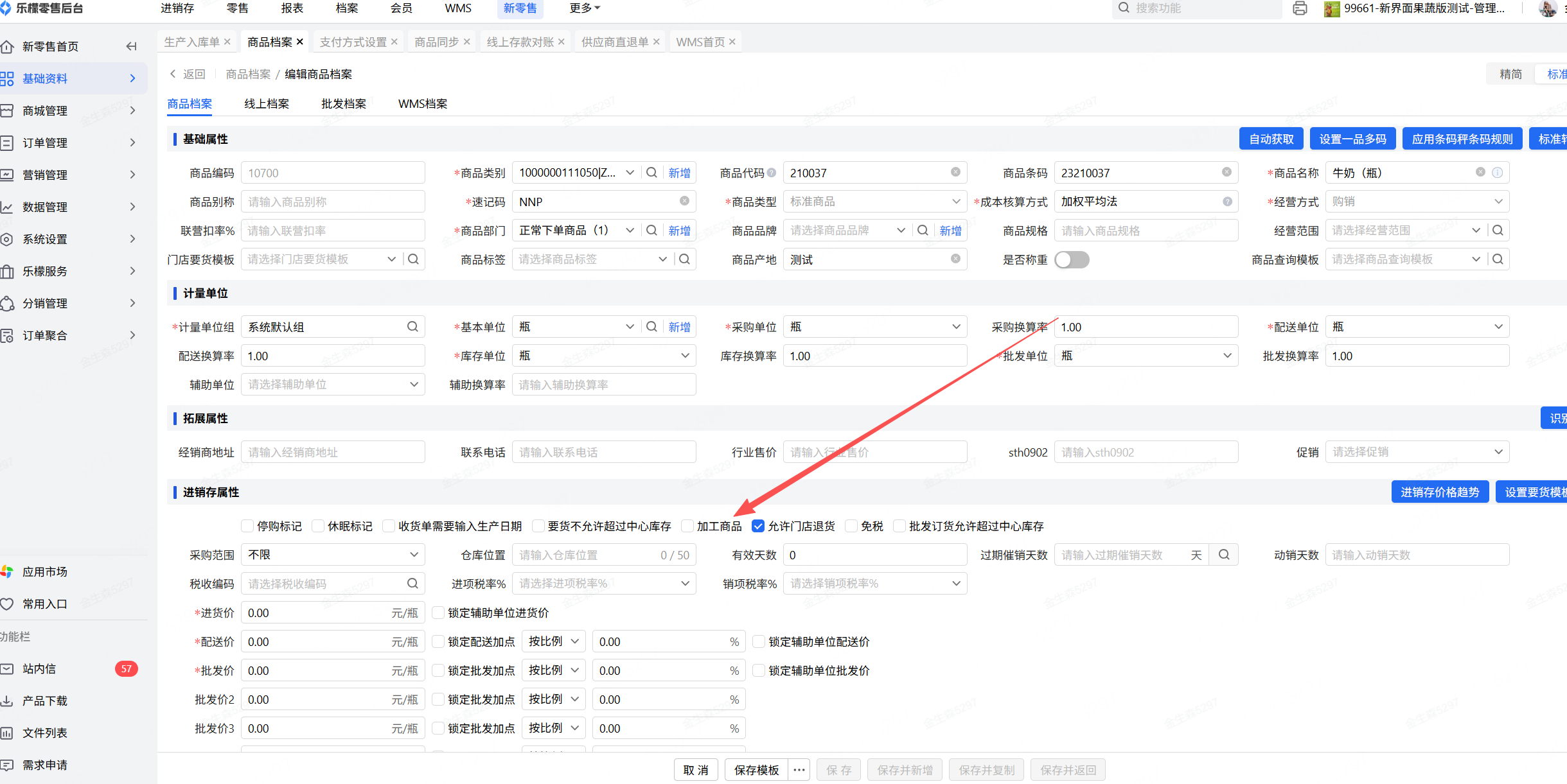 常见问题1:勾选加工商品代表为成品,而非物料商品