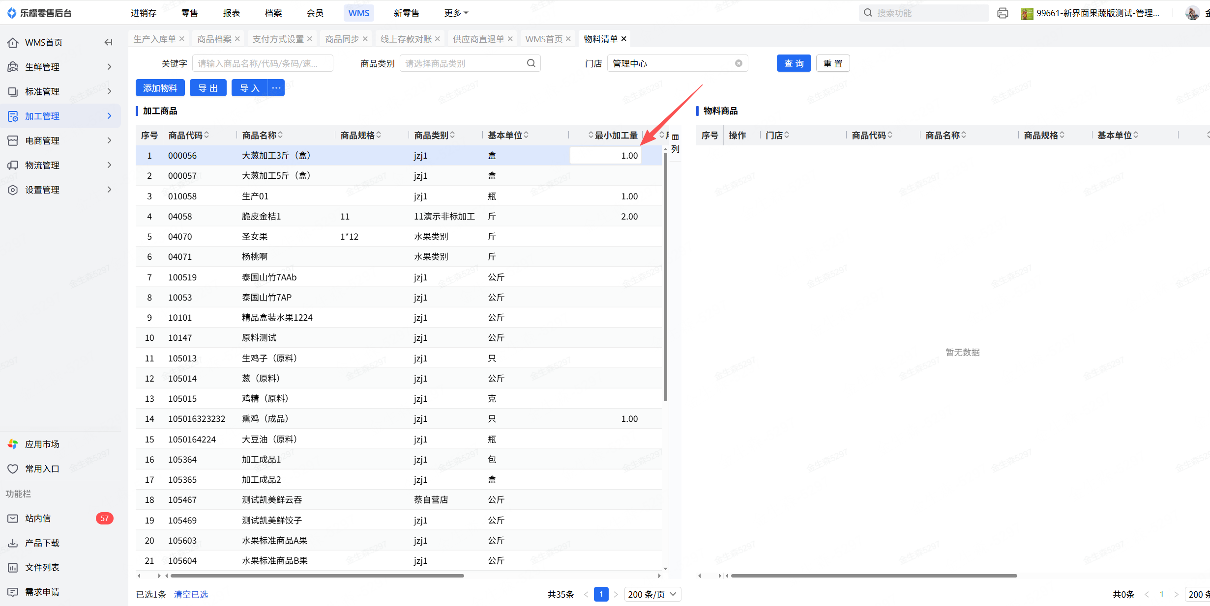 未开启参数,生产计划单添加商品数量小于最小加工量允许保存/审核