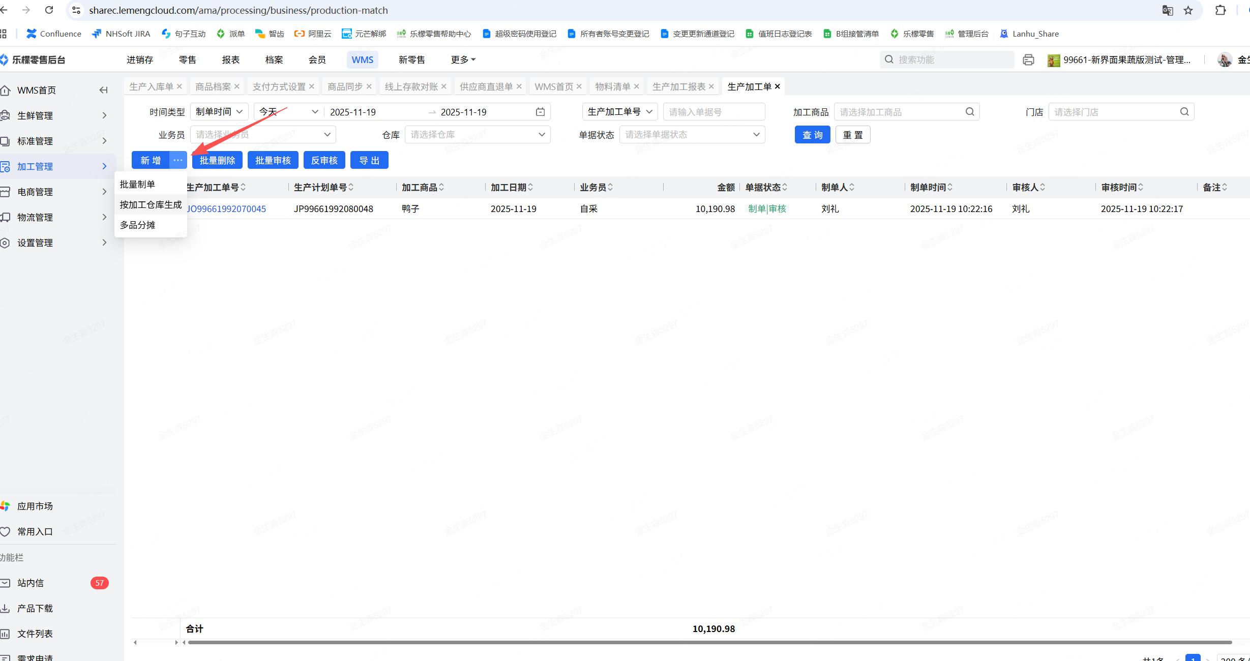 常见问题4:计划单里有多个商品,如何批量制单——点击新增-批量制单,注:此功能非配送中心门店不可见。