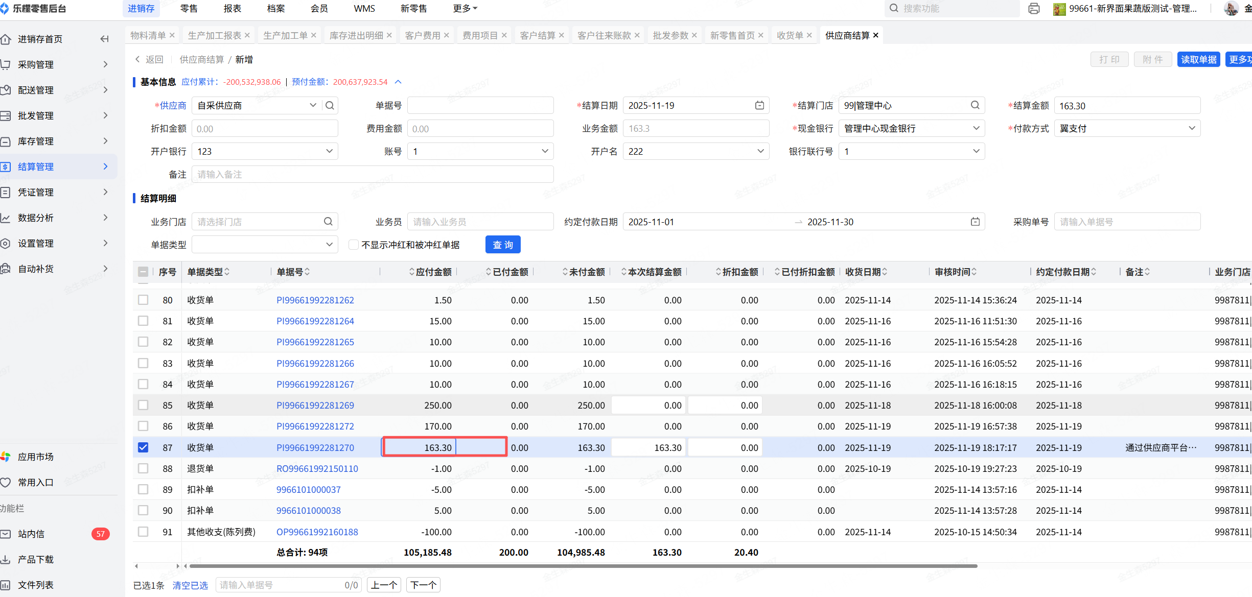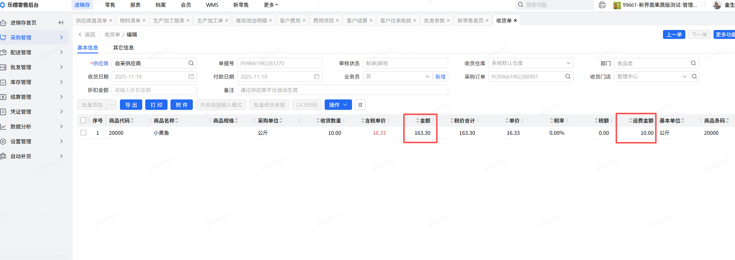 收货单填写了运费,去做供应商结算时发现没有计算运费