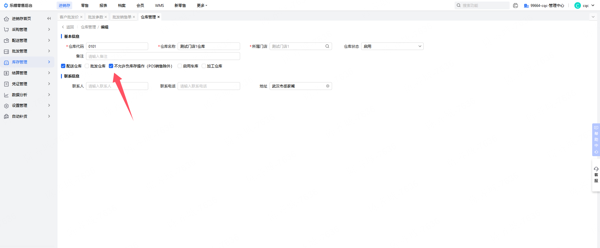 仓库勾选“不允许负库存操作(POS销售除外)”