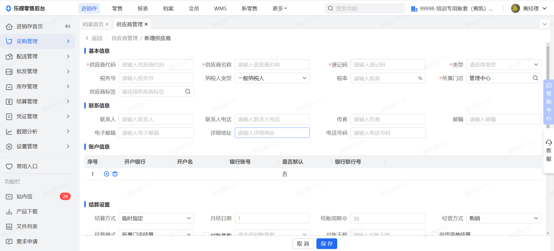 商家通过系统供应商管理模块,维护供应商的基本信息。针对不同的供应商,后续可以设置不同的供应商的收货价以及结算管理。