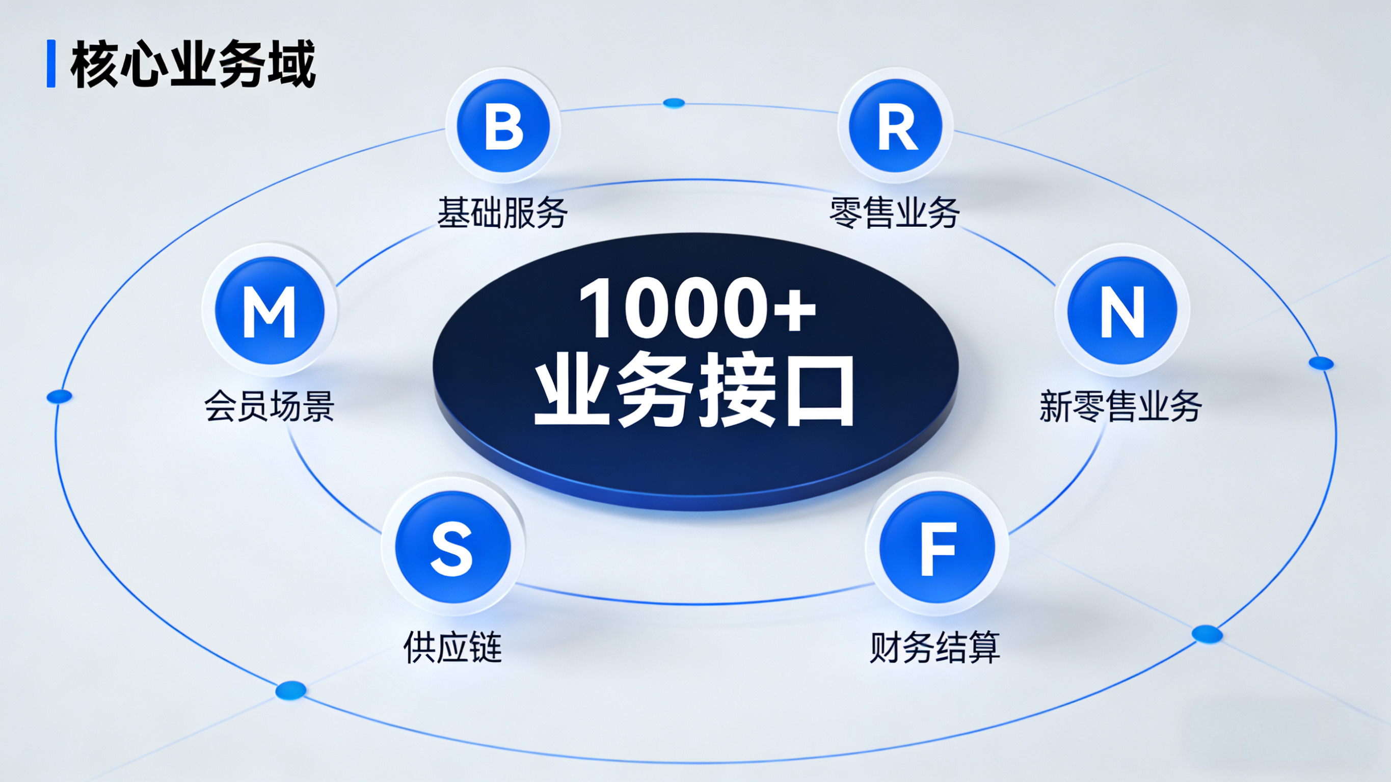 乐檬零售提供 1000 + 业务接口,全面覆盖核心业务域:
