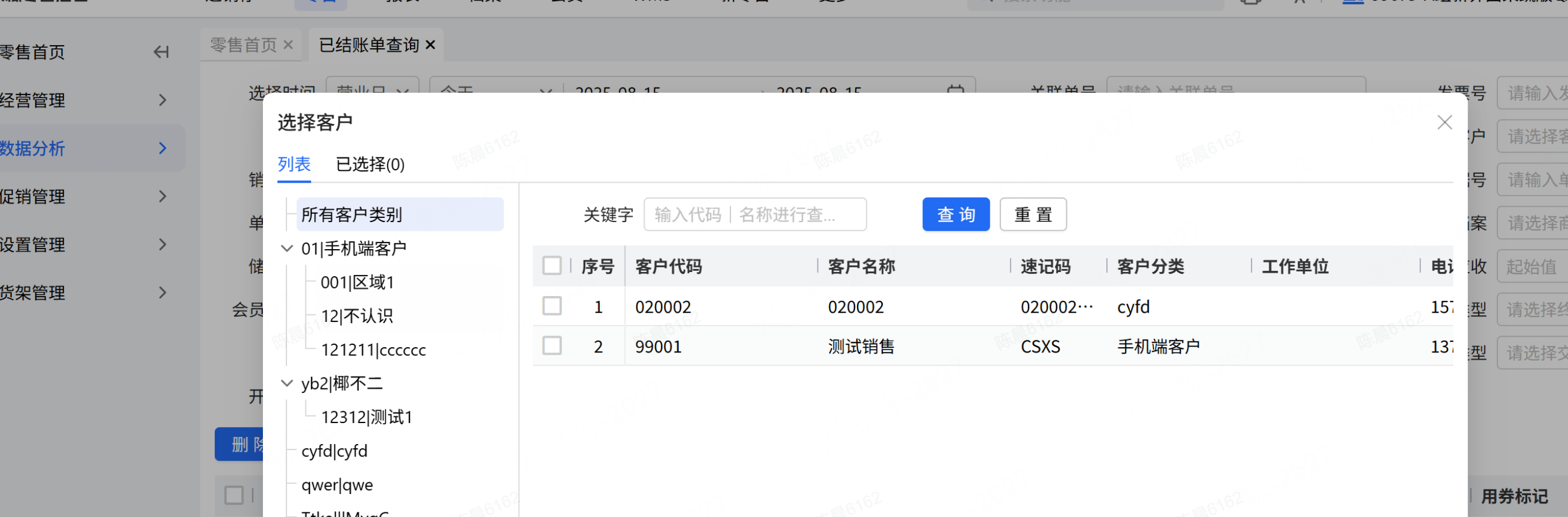 【零售页面】客户(批发客户)筛选项弹窗可见范围根据所属门店+门店管理范围控制