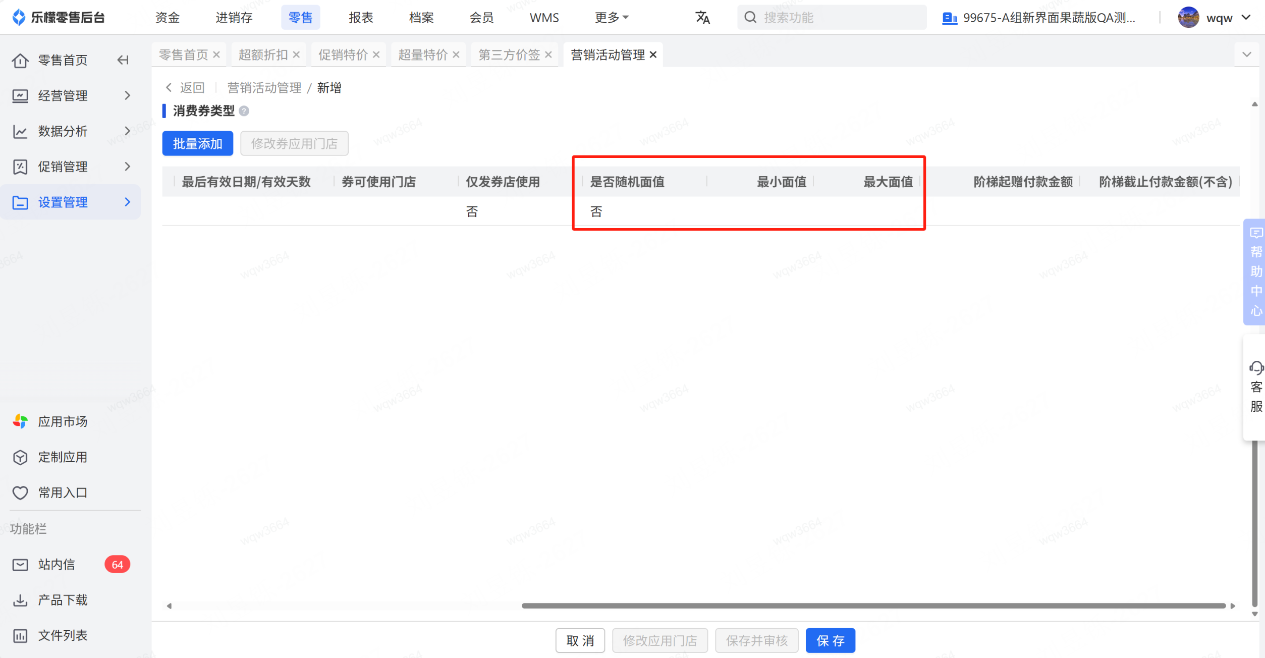 乐檬零售 - 营销活动管理新增活动不允许设置随机面值