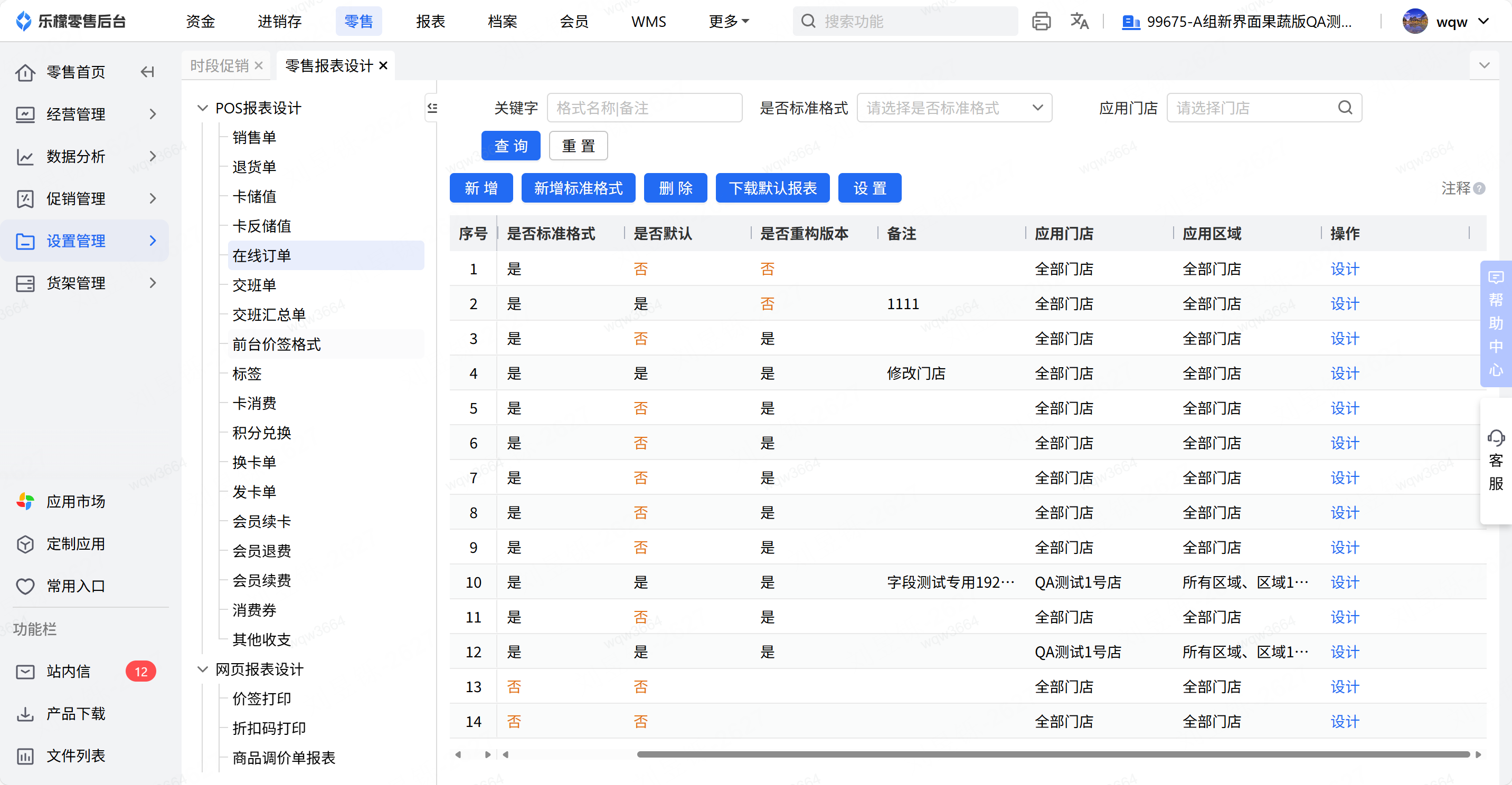 功能路径:零售-设置管理-业务模板-零售报表设计