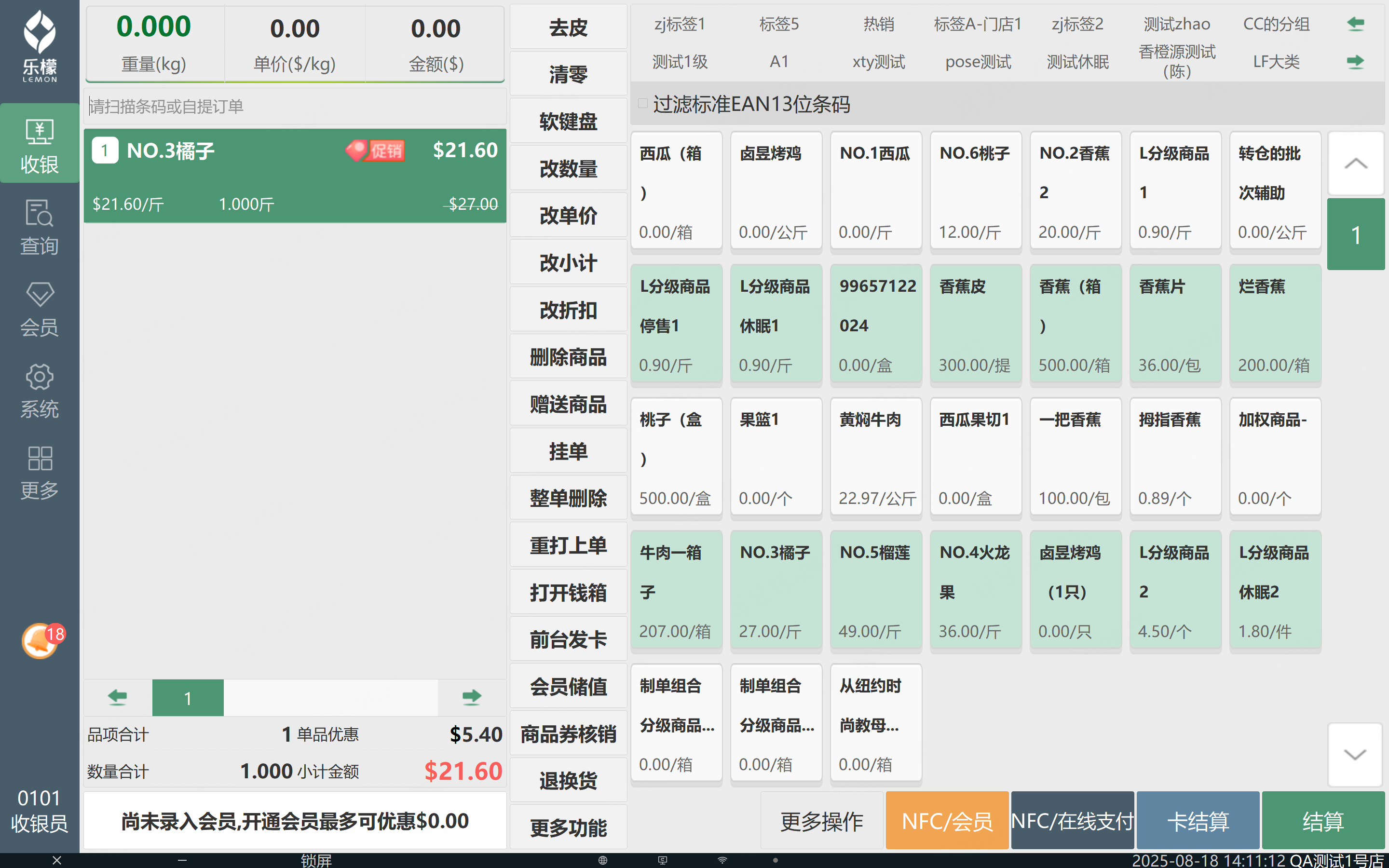 5、前台收银时若时间刚好到下个时段,则本单还是按上个时段结算,结算后才会更新