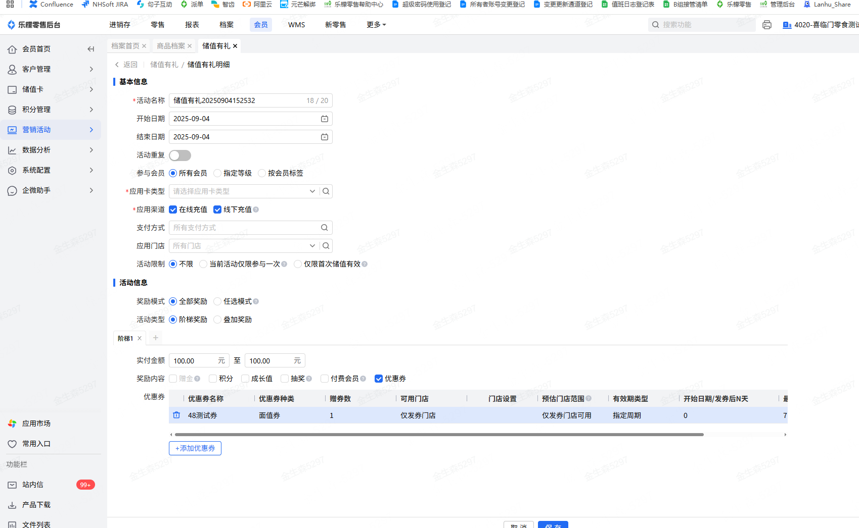 👉【操作路径】:1.会员-营销活动-储值有礼