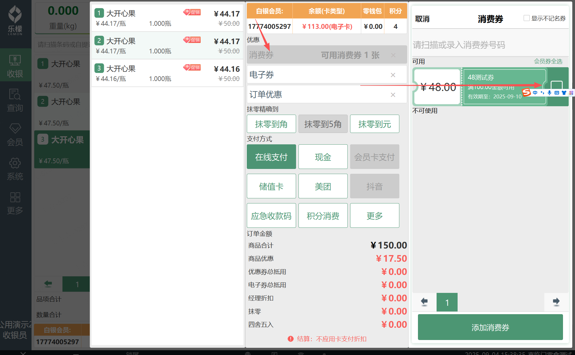店内节假日前台充值有赠送金额、消费券等,可以新增储值有礼活动,促进客户存款