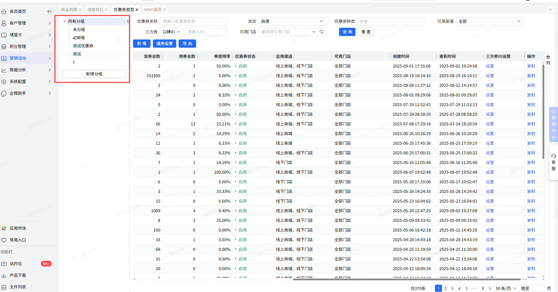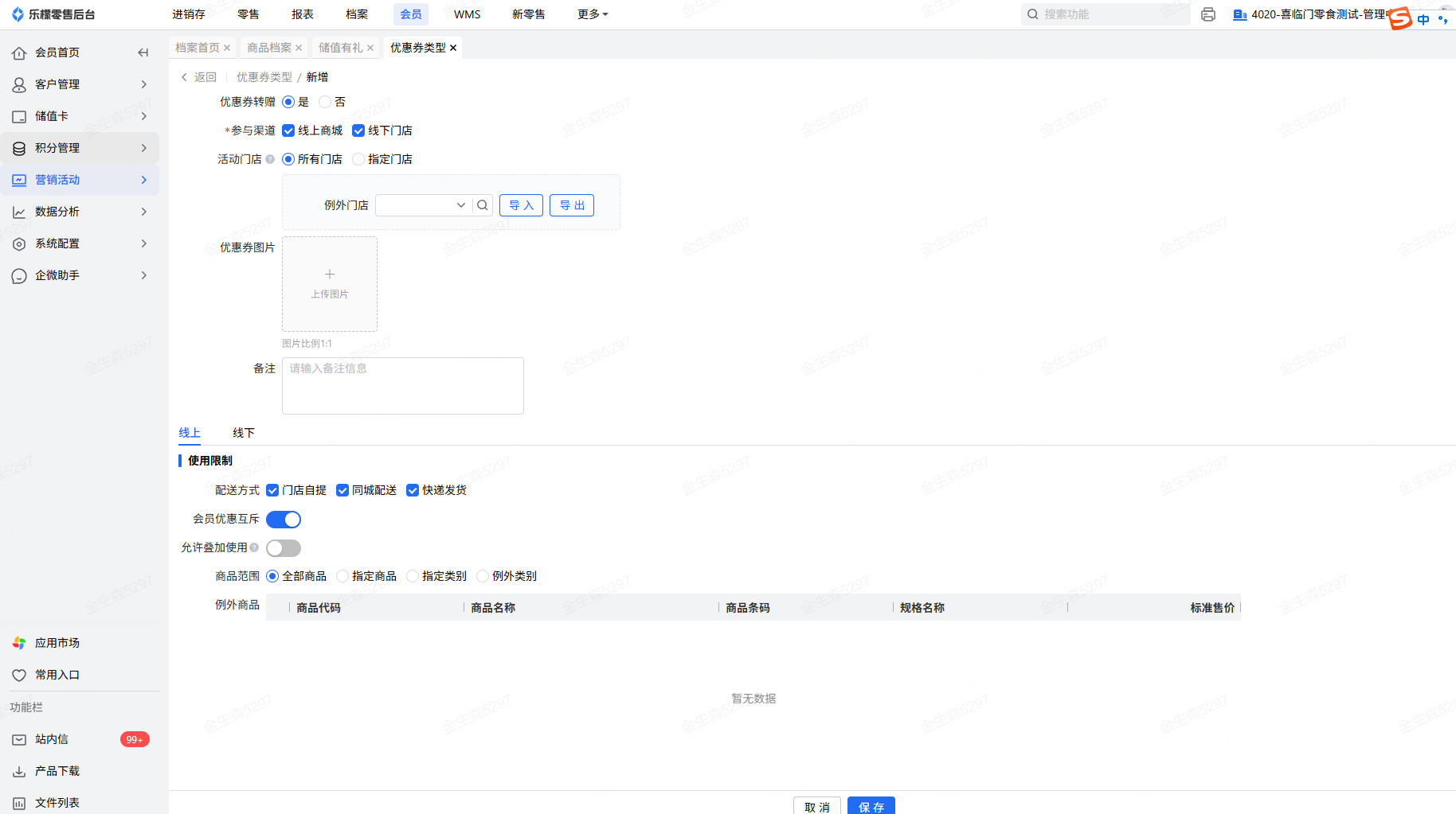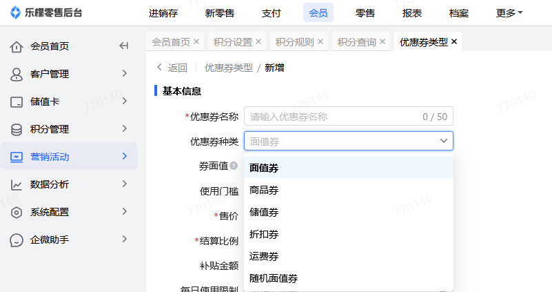 👉【操作路径】:1.会员-营销活动-优惠券类型