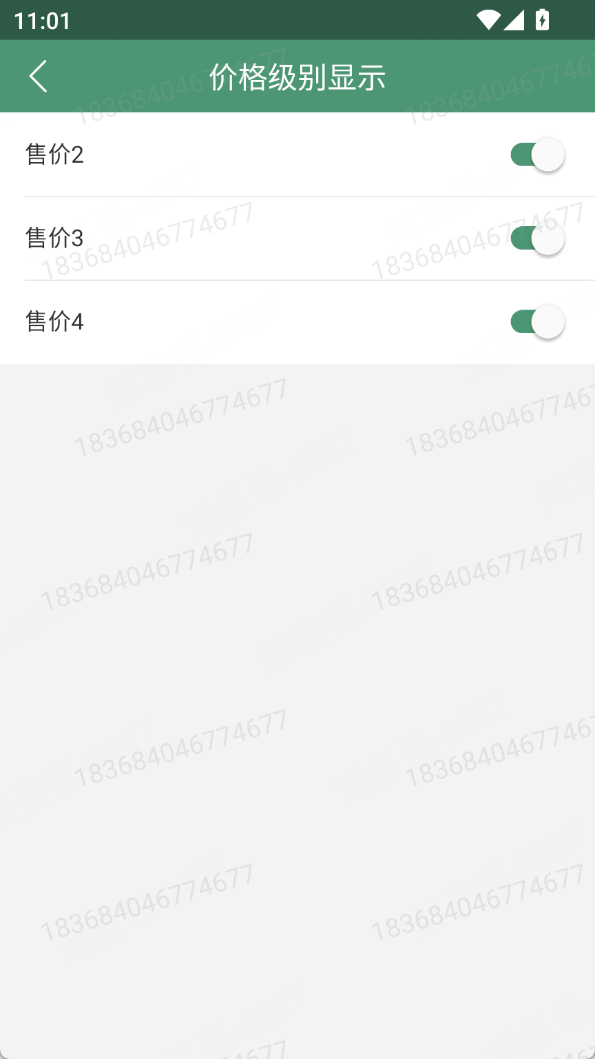 例如:有售价1234、无最低最高售价权限用户,在调整级别页面仅勾选标准售价、售价2则商品明细页面仅显示标准售价、售价2