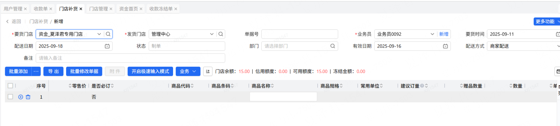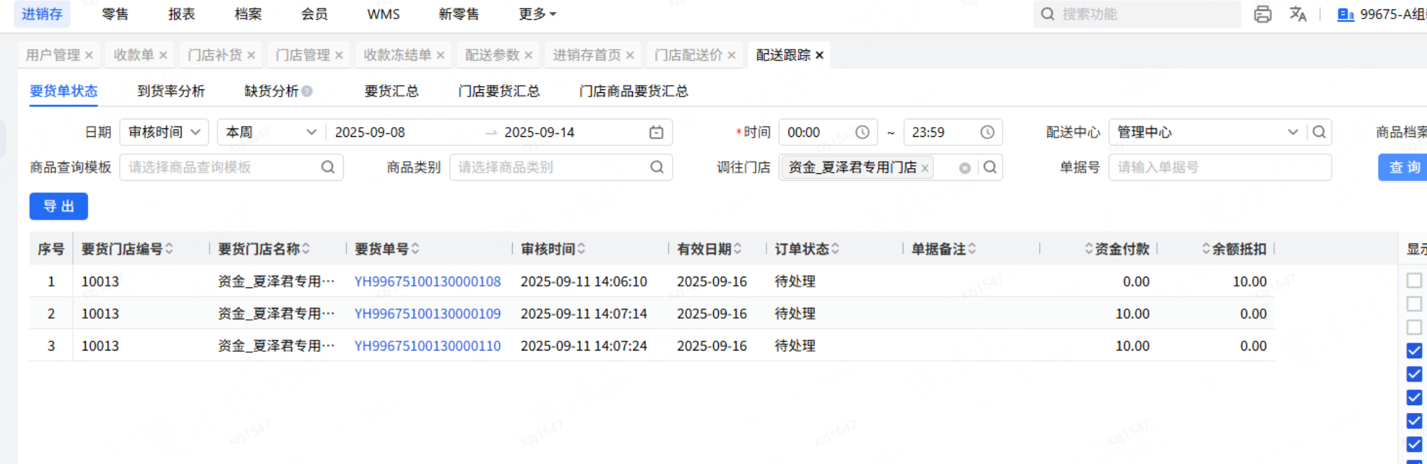 乐檬进销存 - 配送跟踪tab要货单状态增加列“资金付款、余额抵扣”