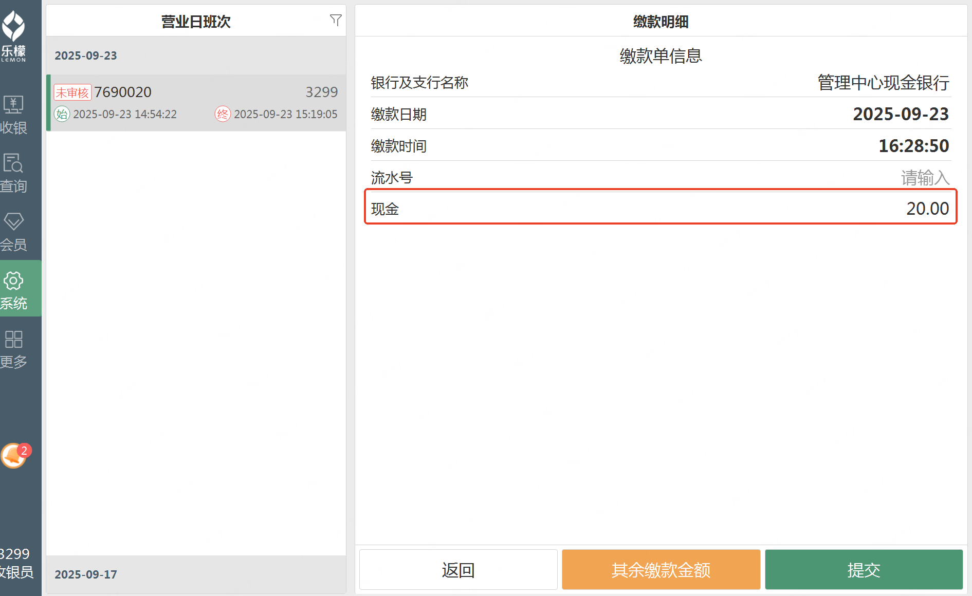 审核收银缴款单 | 未勾选的情况下,不允许在前台审核收银缴款单 |