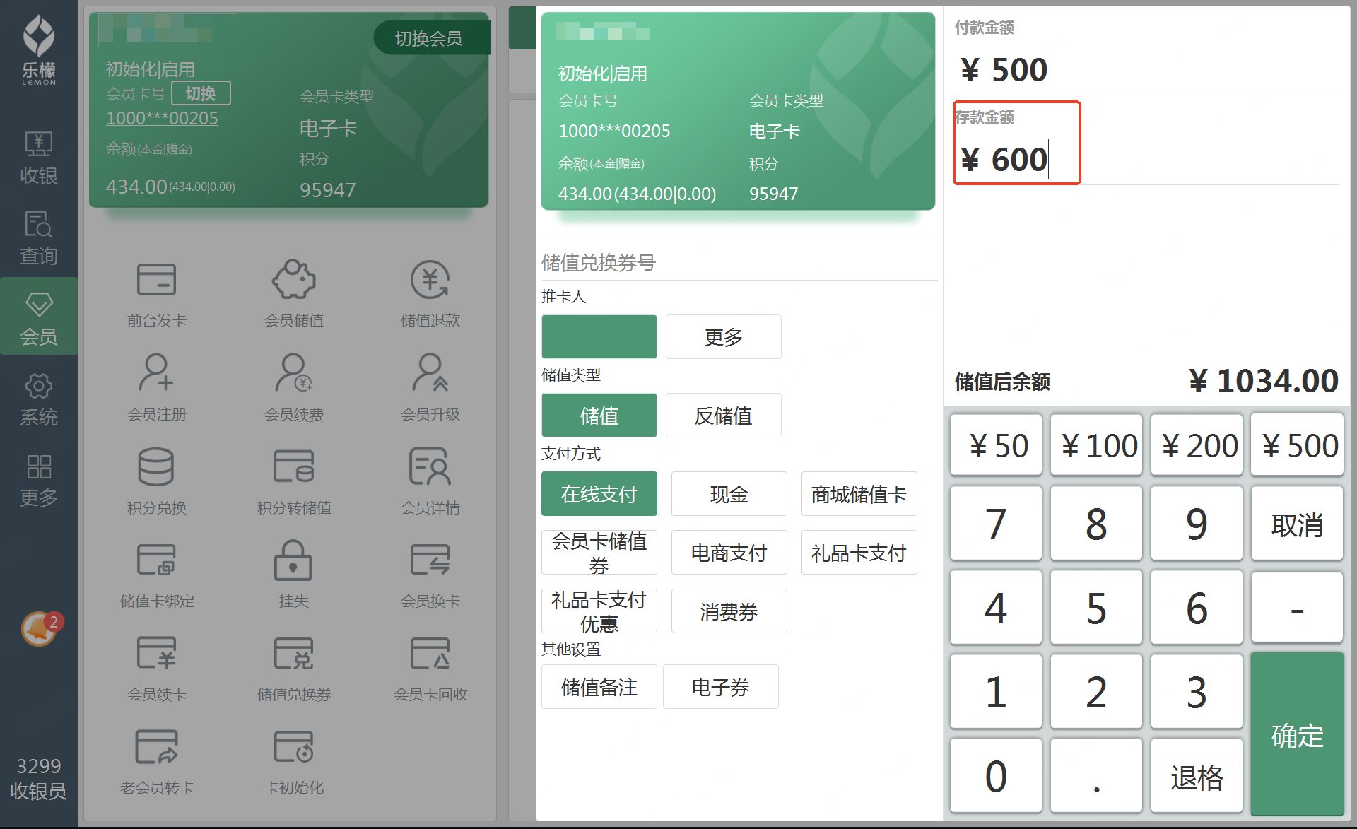 会员卡回收 | 未勾选的情况下,不允许在前台回收会员卡 |