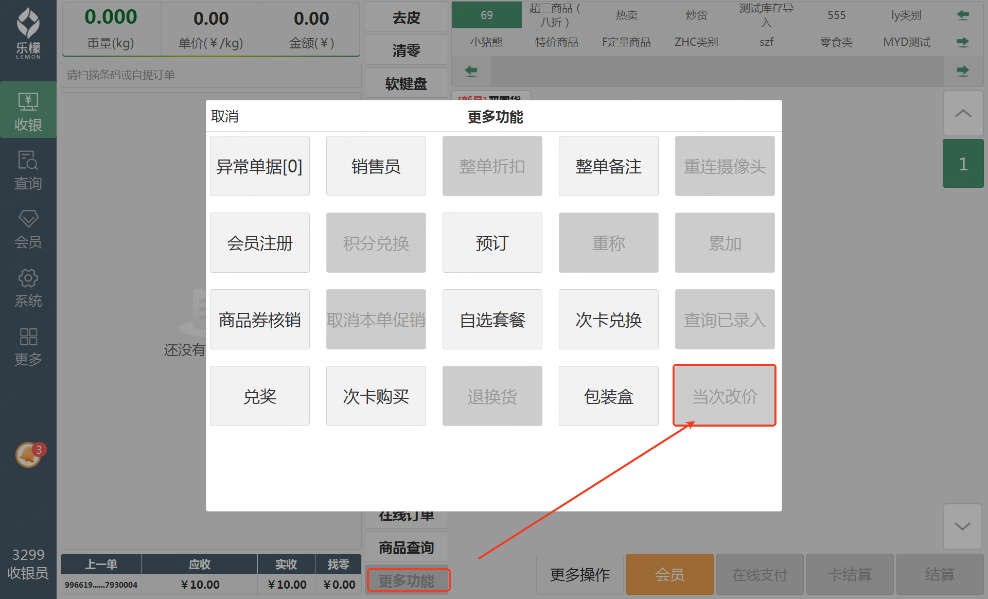 修改单价 | 未勾选的情况下,不允许临时修改商品单价(仅针对此次销售的改价) |